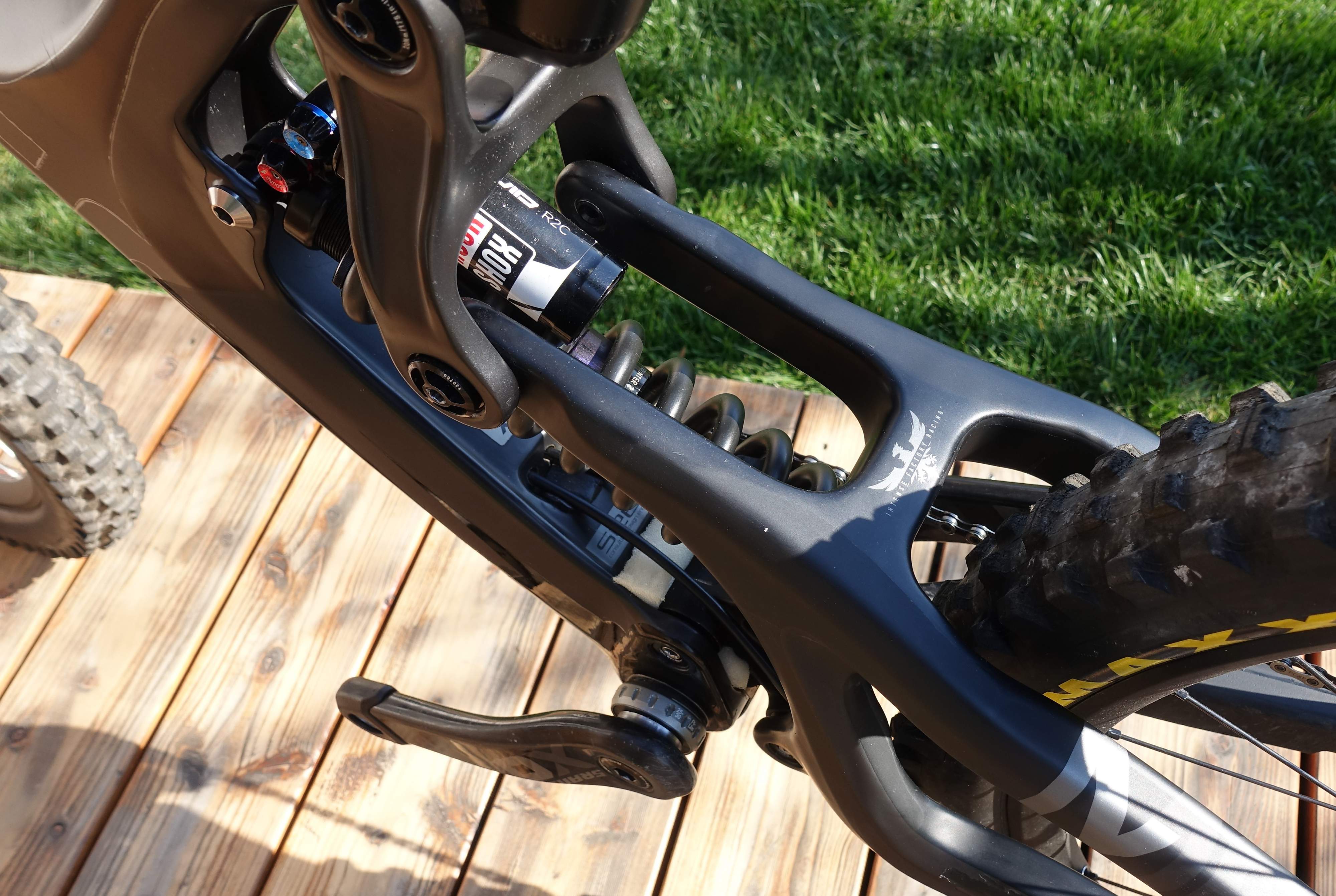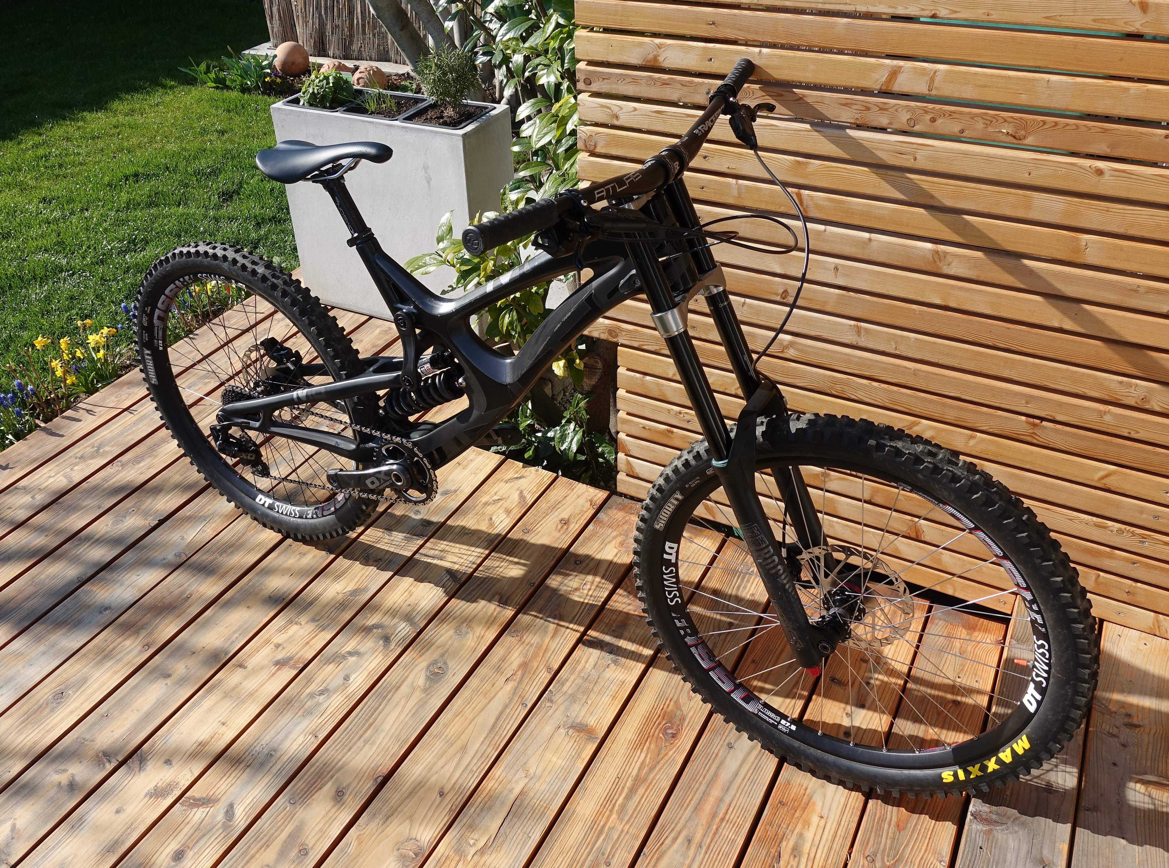 Telefon: 0043676814282298Ich biete hier dieses tolle Intense M16C Downhill MTB von 2017 zum Verkauf an. Es gibt keinen bestimmten Grund für den Verkauf. Das Bike wurde Neujahr 2017 gekauft beim Bikeshop Kreuzer. Es gibt keinerlei Risse oder Dellen, das Bike wurde ständig auf solche überprüft. Mitte 2017 wurde der Hinterbau aufgrund eines Risses erneuert. 2018 wurden die beständigen Shimano Saint Bremsen gegen komplett neue SRAM Code RSC Bremsen getauscht. Die Kette wurde auch oftmals erneuert. 2019 wurden dann neue Code R verbaut. Zudem wurde 2019 das Casting der Boxxer erneurt. Das Bike wurde sehr oft gewartet und gut gepflegt. Nach jedem Rennen wurde das Bike vollkommen zerlegt, geputzt, neu gefettet und zusammengebaut. Es ist in spitzen Zustand, bis auf die Gebrauchsspuren, welche von 2 Jahren Rennsaison über natürlichem Weg kommen. Der komplette Rahmen wurde kurz nach Erhalt mit einem Folienkit von InvisiFrame und an besonderen Stellen mit Motocross Folie abgeklebt. Hinzu kommt, dass sowohl die Gabel, als auch der Dämpfer fast neu vom Serive bei SuspensionLab kommen. Der Dämpfer wurde ein wenig verändert, damit er noch feiner anspricht. Teileliste: Rahmen: Intense M16C XL matt schwarz Gabel: Rock Shox Boxxer Debon Air R2C (NEU) Dämpfer: Rock Shox Vivid R2C (Tuning) Laufräder: DT Swiss Antrieb: SRAM X01DH Cockpit: Race Face (NEU) Bremsen: SRAM Code R (NEU) Reifen: Maxxis Shorty Pedale: nicht inkludiert Neupreis (2017): ~9200€ Kann nach Absprache gerne Probegefahren werden. Abholung lieber als Versand. Im äußersten Fall auch Versand möglich. Wegen Privatverkauf keine Rücknahme, Garantie oder Gewährleistung!