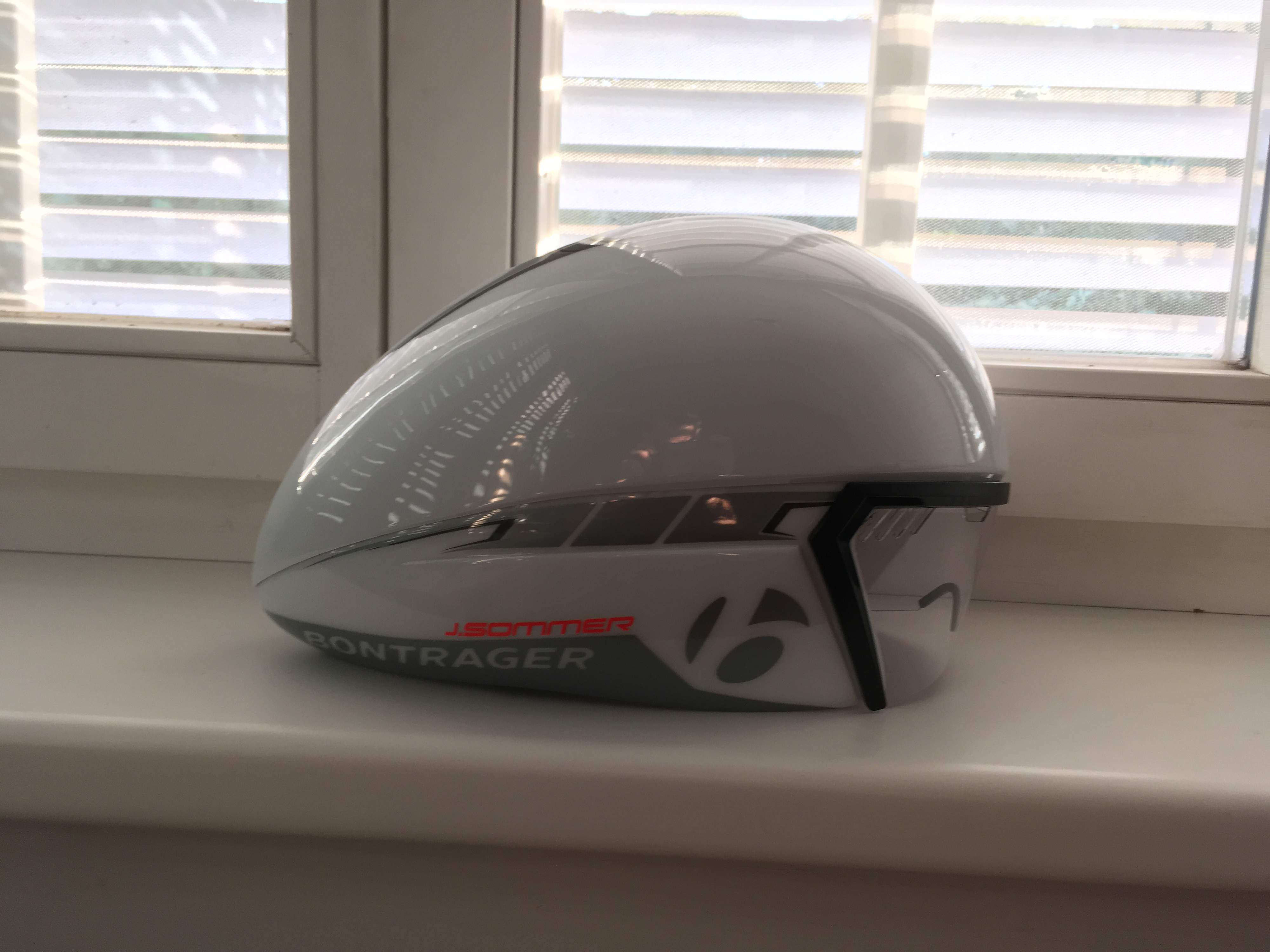 Verkaufe einen Bontrager Aeolus Zeitfahrhelm in Gr. S Farbe Weiß. Habe den Helm für Triathlons gekauft und bei 2 Rennen (gesamt 120km) getragen. Er ist meiner Meinung nichts für lange und heiße Rennen, da nicht sehr viel Belüftung vorhanden ist. Für Kurzdistanz Triathlons oder Zeitfahren perfekt. Er ist sehr schmal gebaut, wodurch man nicht wie Calimero aussieht. Helm und Visier sind Sturz und Kratzfrei. Den Namensticker kann ich noch abziehen. UVP des Helms ist €250 Privatverkauf, keine Gewährleistung oder Rücknahme.