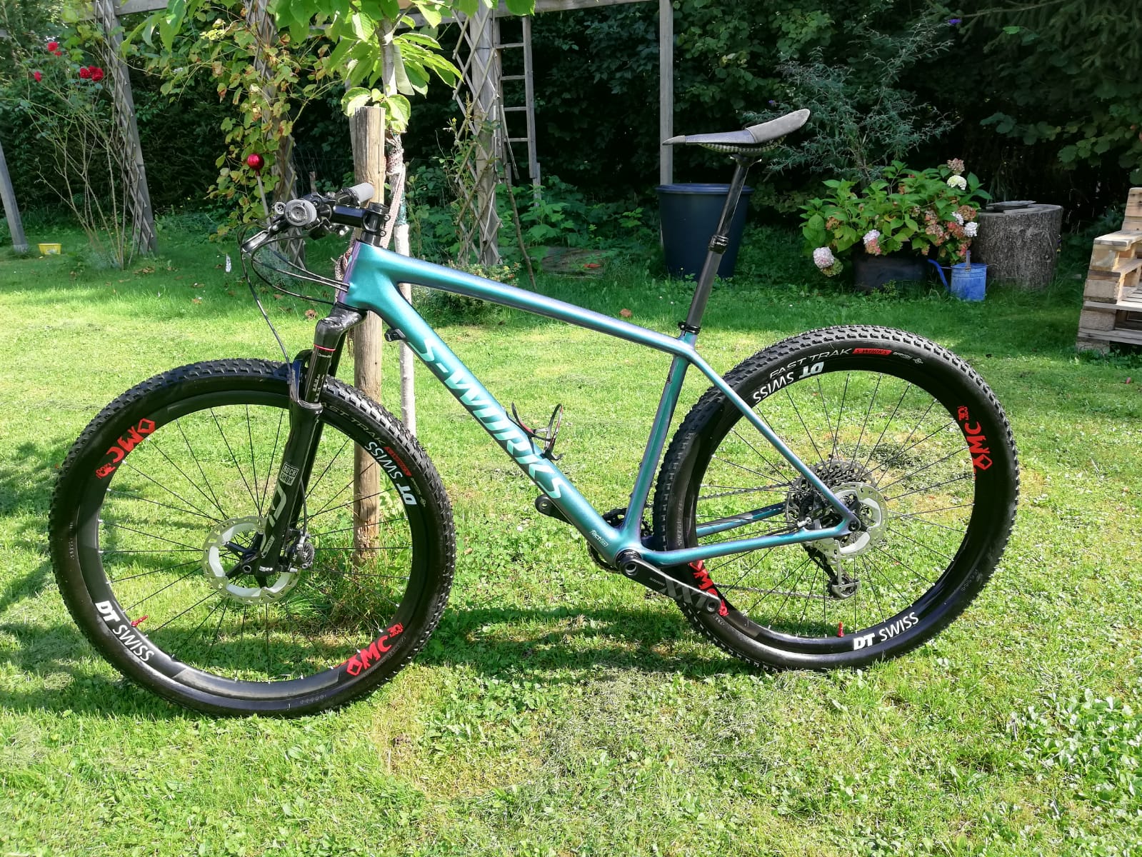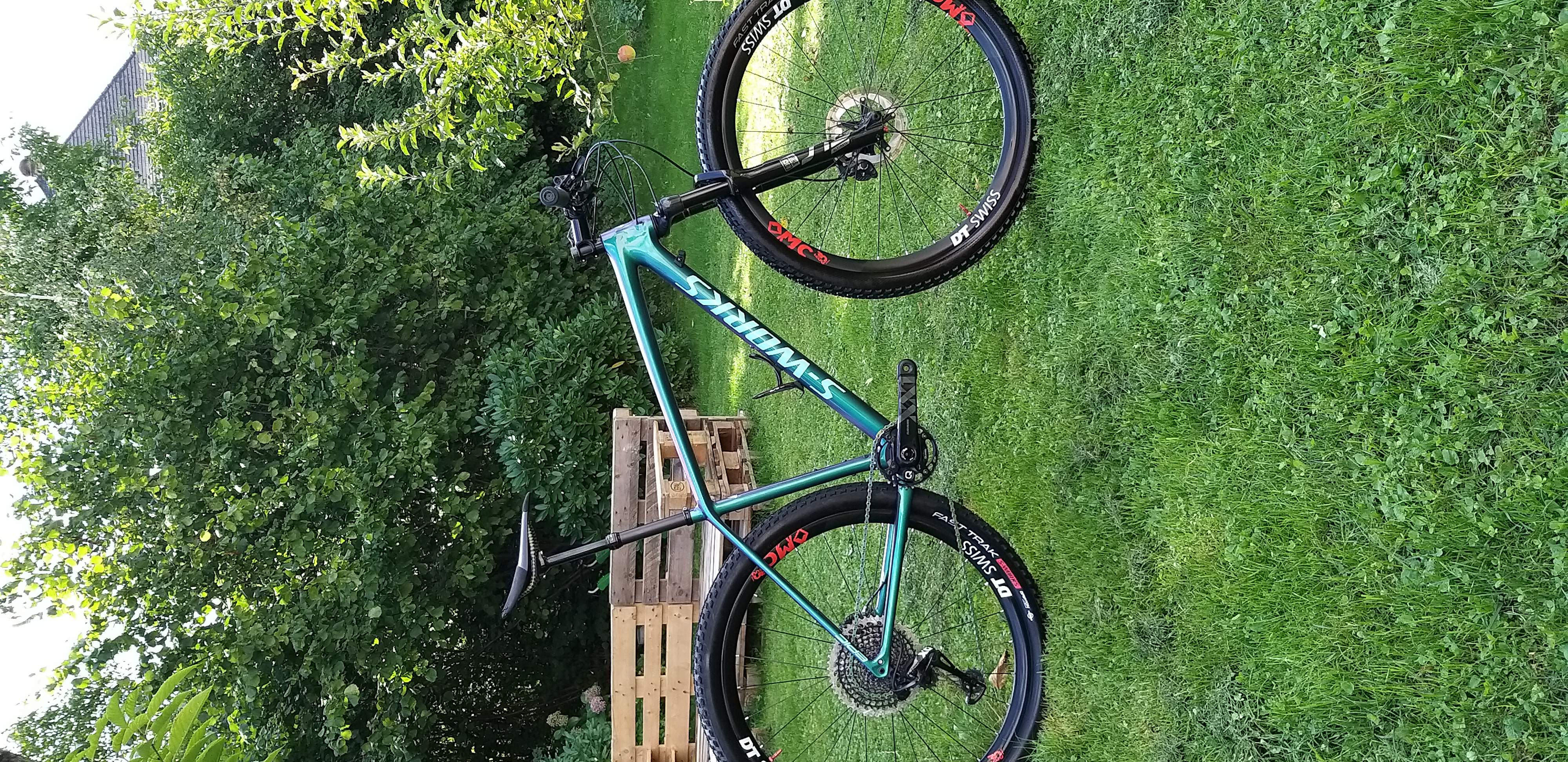 Telefon: 06508317744Zu verkaufen steht mein custom aufgebautes Specialized S-Works 2019 Epic Ht in Größe L. Es ist in einem Top Zustand und hat kaum Kratzer. Alles funktioniert einwandfrei und ohne Probleme. Verkaufe das Bike aufgrund eines Wechsels zum Enduro Bike. Spezifikationen: Rahmen: Specialized 2019 S-works Epic Hardtail Frameset (Gloss Oil Slick/Mint) Gabel: Rock Shox 2020 SID Ultimate Carbon 29, 100mm, remote lockout Felgen: Dt-Swiss XMC 1200 Spline 30mm, Aero Speichen und 240 Narben Kurbel: Sram XX1 Eagle (DUB) Quarq Wattkurbel, 175mm Schaltwerk: Sram X01 Eagle 12 Speed Kasette: Sram XX1 Eagle 10-50 (Black)