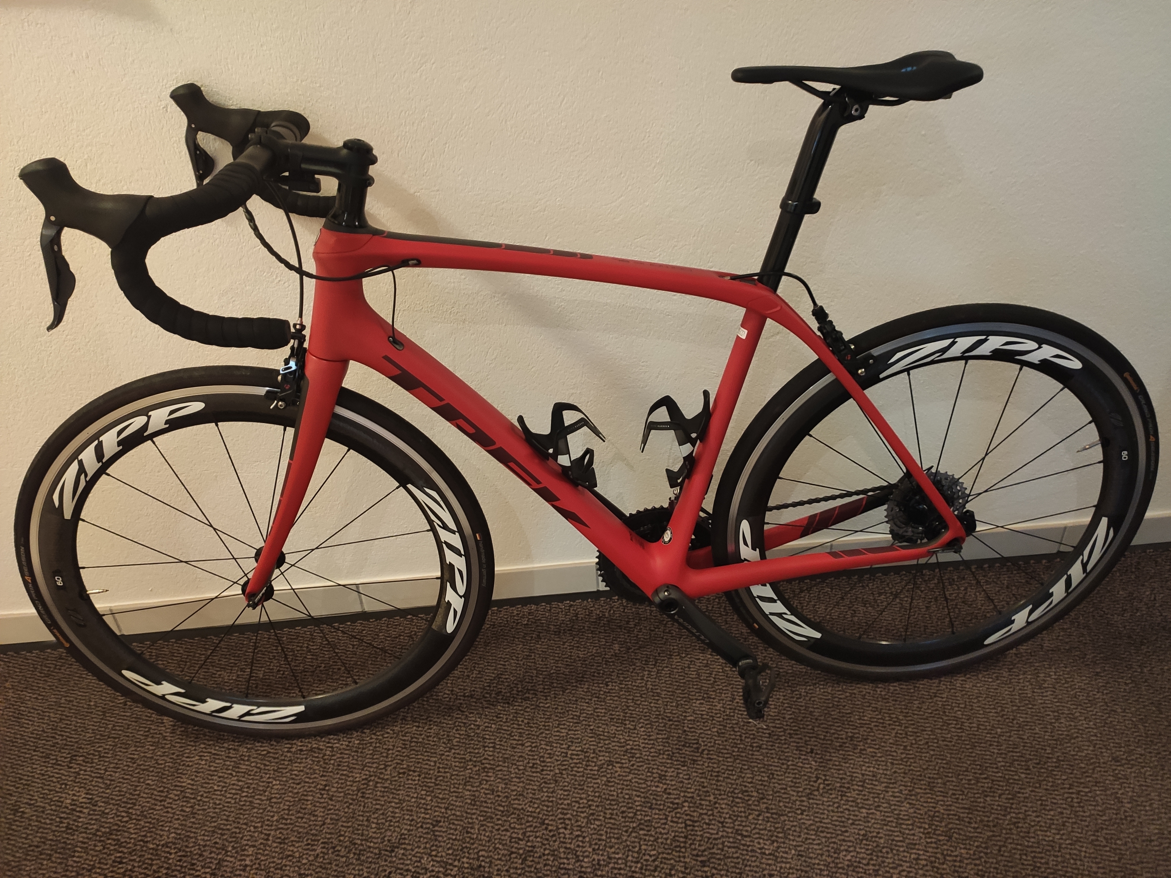 Telefon: 0676/5662457Verkaufe hier mein Trek Domane SL6 Pro Di2 inkl. ZIPP 60 Clincher Laufräder. Komplette Shimano Ultegra Ausstattung inkl. Di2. Rahmengröße 56/L (Körpergröße 175-185cm). Gekauft wurde das Rad im Jahr 2018 beim Fachhändler (Rechnung vorhanden). Die Laufräder wurden im Jahr 2019 gekauft, Neupreis waren 1500 Euro. Service wurde vor kurzem gemacht - alles in Ordnung. Keine Stürze oder Kratzer. Pedale sind nicht im Preis inbegriffen ebenso die Flaschenhalter. Verkaufspreis 3500 Euro. (ohne Laufräder auf Anfrage).