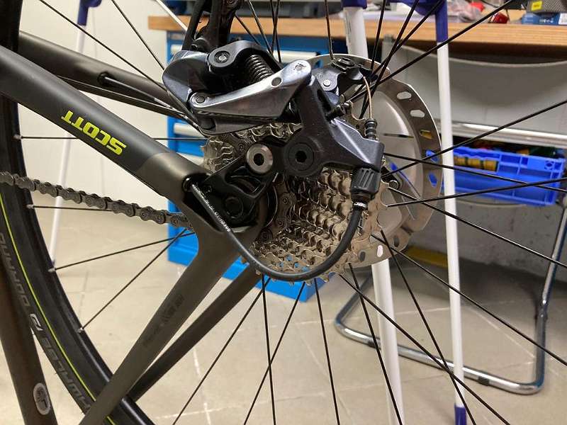 Rennrad SCOTT ADDICT 10 DISC bronze L inkl. Pedale und Flaschenhalter Modell 2019 *** Detailinformationen *** Rahmengröße: 56 cm Farbe: Braun Zustand: Neuwertig Übergabe: Selbstabholung Beschreibung: - Gekauft im April 2019 - Kaum genützt (264 km) *** SPEZIFIKATION *** Material: Carbon Kurbelsatz: Shimano Ultegra FC-R8000 Hollowtech II 50x34 T Schaltwerk: Shimano Ultegra RD-R8000-GS 22 Speed Laufräder: Syncros RP2.0 Disc 28 Front / 28 Rear Syncros RWS Hersteller Gewicht: 8,2 kg Geschlecht: unisex Farbe: Braun Sekundärfarbe: Gelb Gabel: Addict Disc HMF 1 ⅛”-1 ¼” Carbon steerer Alloy Dropout Laufraddimension: 28” Bremsanlage: Shimano BR-R8070 Hyd Disc 160/F and 160/Rmm SM-RT800 CL Rotor Bremsanlagen-Art: Hydraulisch Disc Anzahl Gänge: 2x11-fach Rahmen: Addict Disc HMF Carbon technology Endurance geometry / replaceable dropout Kassette: Shimano CS-R7000 11-32 Kette: Shimano CN-HG601-11 Umwerfer: Shimano Ultegra FD-R8000 Schalthebel: Shimano Ultegra ST-R8020 Carbon Dual control 22 Speed Lenker: Syncros Creston 2.0 Compact Alloy 31.8mm Vorbau: Syncros RR2.0 1 ⅛” / four Bolt 31.8mm Sattel: Syncros Tofino T-Channel 2.0 Sattelstütze: Syncros Carbon FL1.0 27.2/350mm Reifen: Schwalbe Durano Fold 700x32C Geometrie: Ausgewogen, Sportlich Einsatzgebiet: Rennrad Comfort Schaltgruppe: Shimano Ultegra Schaltgruppe-Art: Mechanisch Übersetzung 50/43