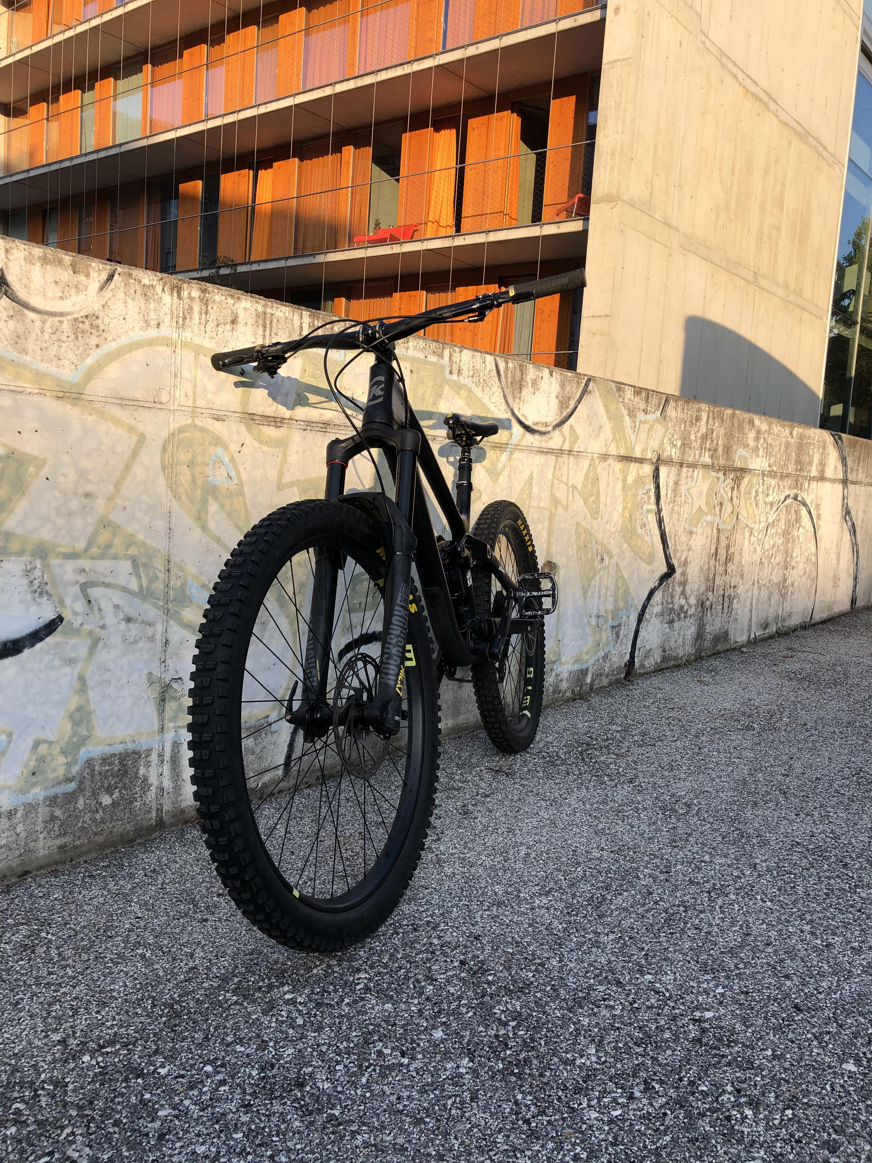 Verkaufe meinen treuen Wegbegleiter - KONA Process CR 153 Carbon aus dem Jahr 2018! Das Bike ist technisch in seinem sehr guten Zustand. Optisch sind dem Einsatzgebiet entsprechende Kratzer und leichte Gebrauchsspuren -> an Werfer, Bremse und im Kurbelbereich sichtbar. Die gelben KONA Logos am Bike wurde mit Schutzfolie abgeklebt und können jeder Zeit entfernt werden. Das Bike wurde auf Tubeless umgerüstet und zusätzlich mit einem Kurbelblatt (30T) ausgestattet, um mir lange und steile Anstiege zu erleichtern. Ich bin 169cm Groß und Fahre das Bike in Größe M - würde sagen passt perfekt. Bei weiteren Fragen gerne Melden und Besichtigungstermin vereinbaren. Technische Details: Rahmen: KONA Carbon mit Aluminium Chain Stays Größe: M Dämpfer: RockShox Super Deluxe RCT Gabel: RockShox Lyrik RCT3 160 mm Tapered 110 mm Schaltergruppe: Sram GX-Eagle 10-50t 12Fach Carbon-Kurbel: (30t) Bremse: SRAM Guide RS (160/160) Sattelstütze: Rock Shox Reverb Griffe: 7OX Wibmer Lenker+Vorderbau: KONA XC/BC 35 Laufräder: WTB 27,5" tubeless mit Maxxis minion DHR und DHF 2,4 Neupreis: 5.500 EUR Kaufdatum: Jänner 2018