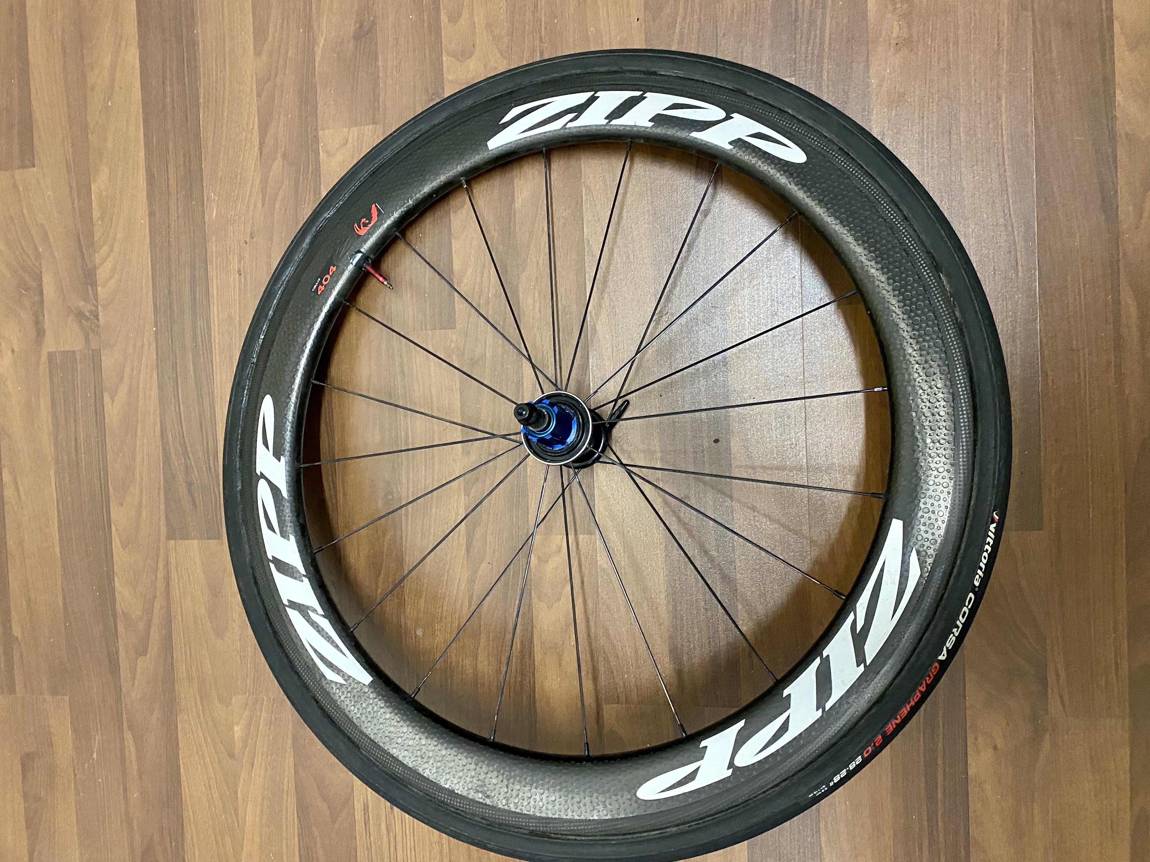 Biete meinen Zipp 404 Laufradsatz mit Zipp Naben für Campagnolo inkl.neuen Vittoria Corsa Graphene 2.0 Schaluchreifen 28mm an (Reifen alleine kosten 150.-) Originale Zippschnellspanner inklusive