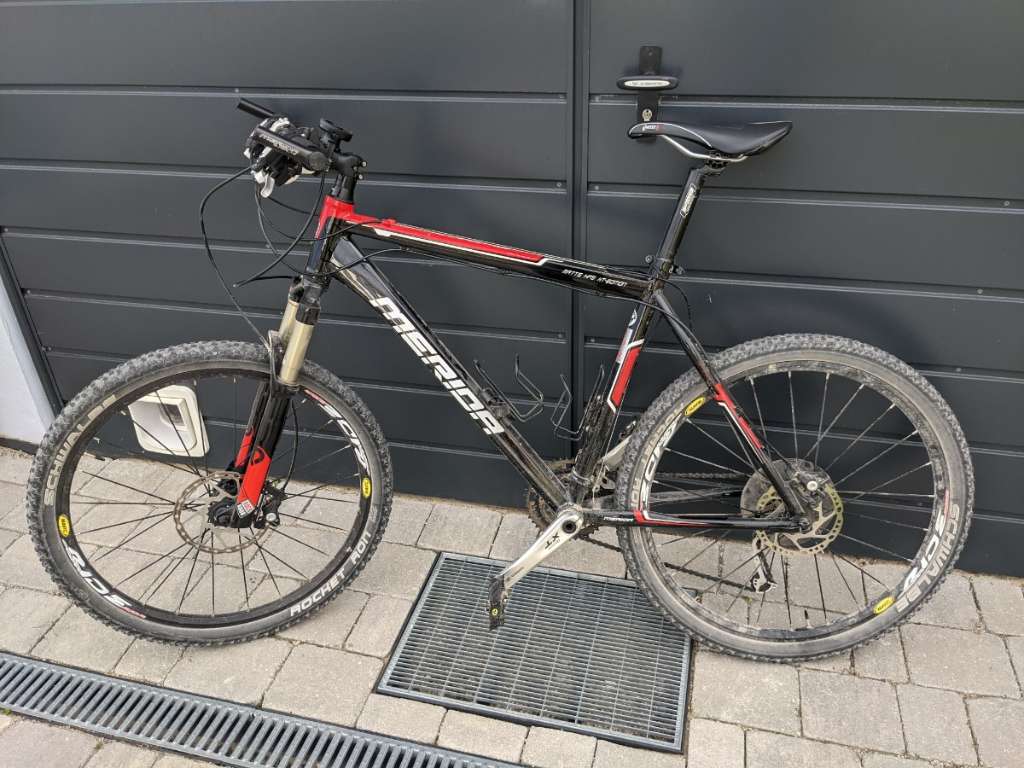 Telefon: 069912642491Bin offen für Angebote! Tu mir schwer den Preis zu schätzen... Hardtail Mountainbike Merida Matts XT. Guter gebrauchter Zustand. Einziges Problem ist leichter Flüssigkeitsaustritt (sichtbar a Foto, daher absichtlich nicht gereinigt nach der letzten Fahrt... ) an der Gabel links. Komplette Shimano Deore XT Ausstattung. Federgabel Rock Shox Race, blockierbar via Schalter. Mavic Felgen inkl SPD Pedale. Bremsen: vorne Shimano 180 mm / hinten Shimano 160 mm Aliante Sattel Schwalbe Rocket Ron Reifen Preis ist VHB. Vor übergabe wirds auch nochmal tiptop gereinigt.