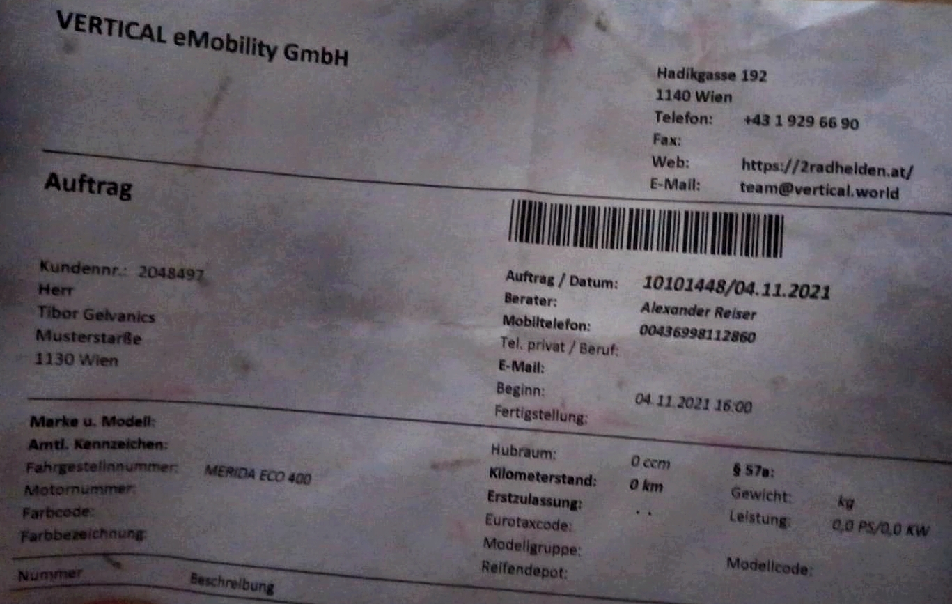 Das Fahrrad kann bei vorheriger online Terminvereinbarung