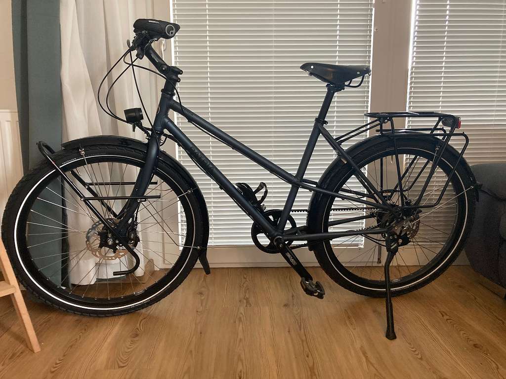 Telefon: +436803175419Da ich leider meine geplante Radreise nicht antreten kann und das Rad für kurze Touren zu schade ist verkaufe ich mein fast neues Patria Terra mit tiefem Einstieg/Damenrahmen/Trapezrahmen in Größe 47. Ich bin damit nicht mal 500 km gefahren. Vor dem Verkauf würde ich noch ein Service durchführen lassen. Ich habe das Rad diesen Juni bei Citybiker Wien gekauft. Das Rad ist mit Rohloff Nabenschaltung, Gates Riemenantrieb und hydraulischen Scheibenbremsen äußerst wartungsarm. Das Terra ist ein unverwüstliches (Welt) Reiserad. Mit der dicken Bereifung kann es ohne Probleme auf Gravel/Schotterpisten gefahren werden. Mit dem SON Nabendynamo und der Busch und Müller Beleuchtung muss die Reise auch bei Anbruch der Dunkelheit nicht enden. Neupreis war 5089 Euro Hier die technischen Details Gangschaltung: Rohloff 14 Gang Nabenschaltung Antrieb per Gates Riemen (kein Schmieren notwendig, langlebiger als Kette), Spannung per verschiebbarem Ausfallende Kettenradgarnitur: Zahnriemen CDX 50, Kurbellänge 170mm Ritzel hinten: Zahnriemen CDX 20 Rohloff mit Snubber Entfaltung: 1,43m-7,52m Rahmenfarbe: Stahgrau matt Vorbau: Ahead 125mm verstellbar Lenker: Riser MAS schwarz Bremse: Deore XT Scheibenbremse vorne und hinten (hydraulisch) Nabe vorne: SON 28 Disc schwarz Nabe hinten: Rohloff CC DB OEM Bereifung: Marathon Mondial 55-559 bzw. 26x2.2" (so im freien Handel nicht erhältlich) Sattel: Brooks B17s - kaum gefahren Scheinwerfer: Busch & Müller Lumotec IQ-X schwarz Rücklicht: Busch & Müller Topline Gepäckträger hinten: Tubus Logo Gepäckträger vorne: Tubus Tara Seitenständer Der Rahmen ist einStahlrahmen Für die Suche: Damenrad, Low-kicker, Tourenrad