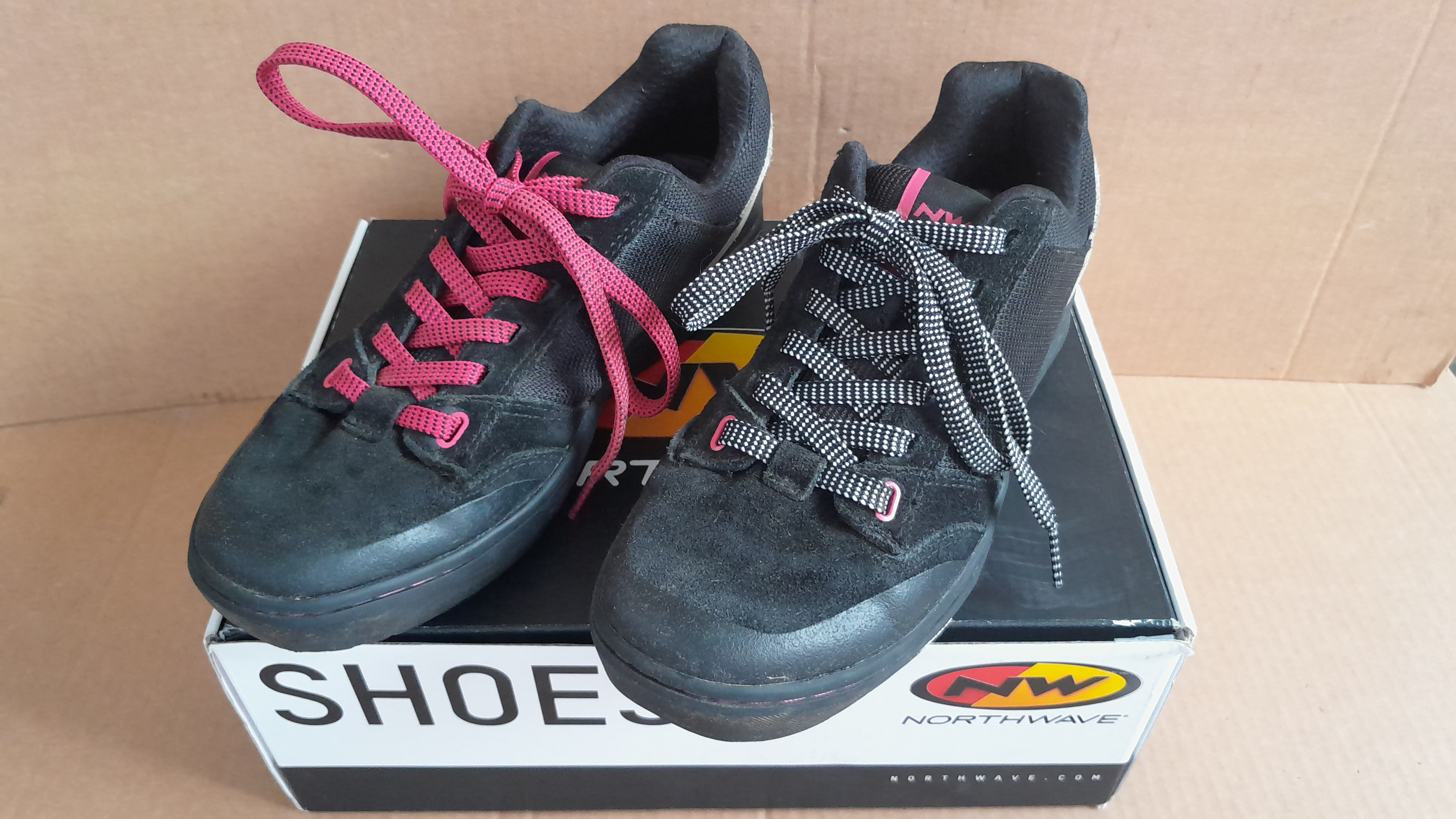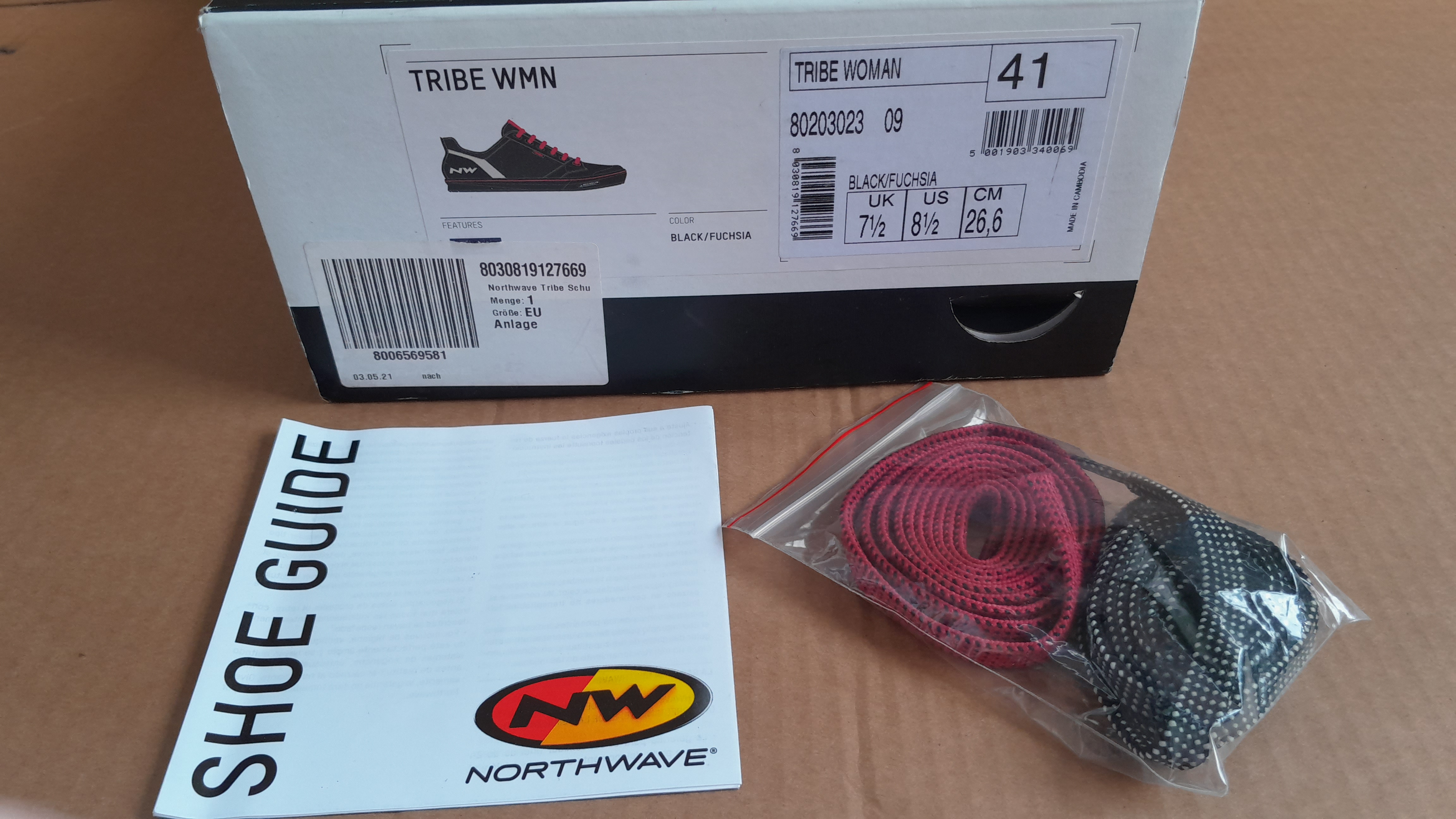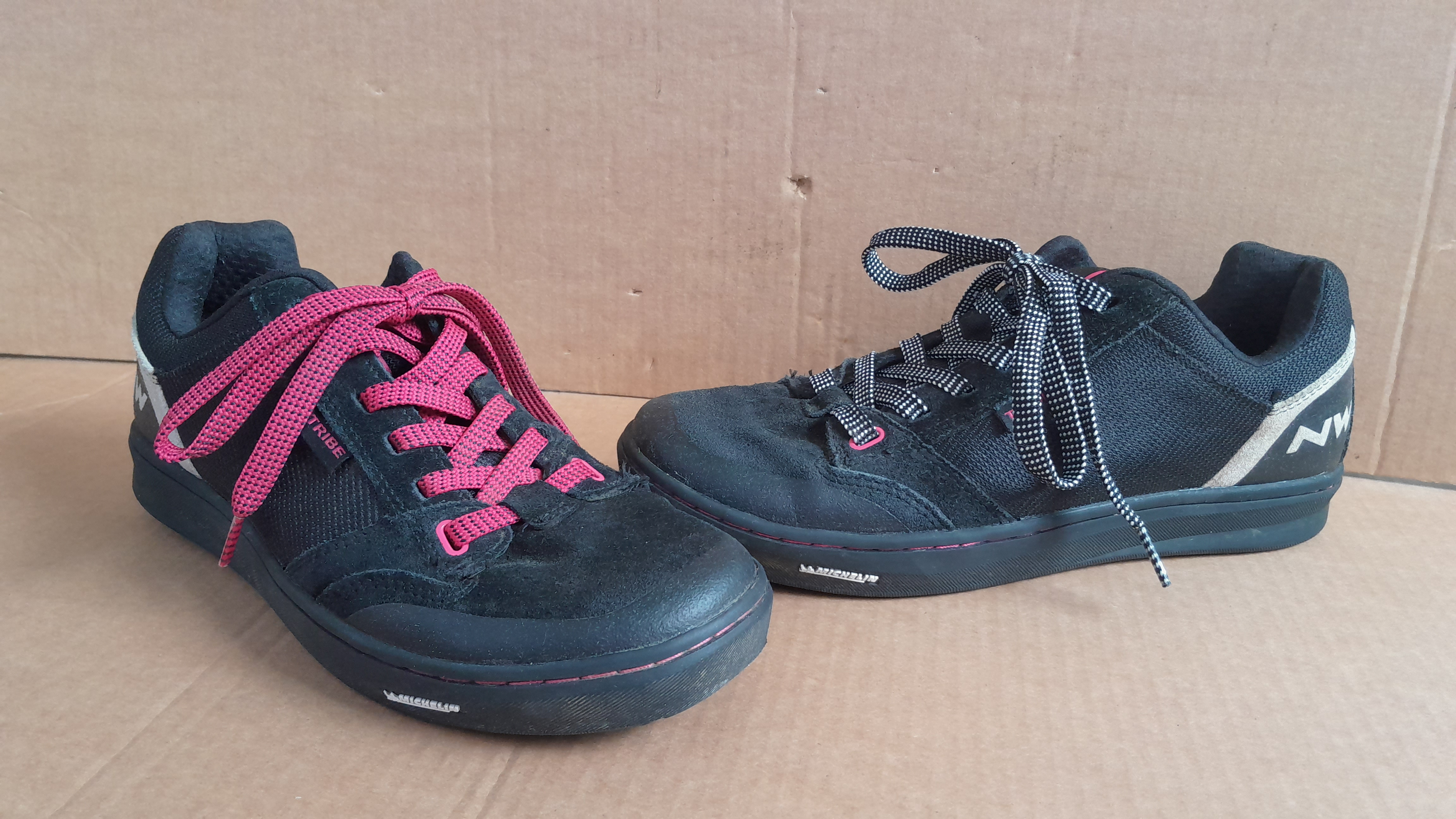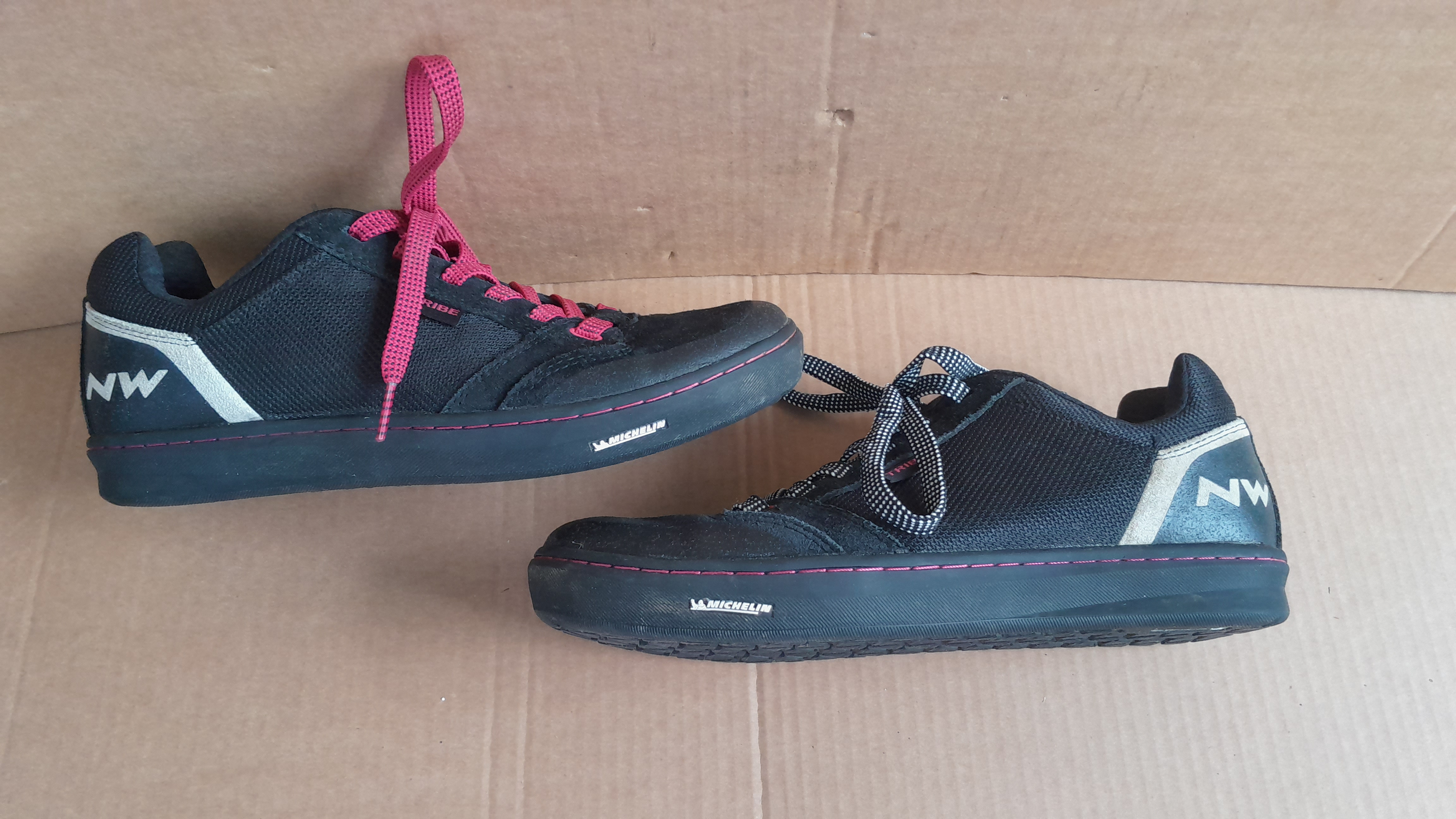 Northwave Tribe WMN (Woman) Schuhe für Flatpedale, Plattformpedale und Bärentatzen mit griffiger Michelin Sohle. Farbe: schwarz/magenta Größe: EU 41, UK 7,5, US 8,5, 26,6cm wenig getragen da meine Tochter schnell rausgewachsen ist. inkl. 2 Paar Schuhbänder Ähnlich fiveten, Shimano, O'neal, Vaude Schuhen. für Mountainbike, Enduro, Allmountain, Trekking, Gravel Versand innerhalb von Ö für bb Mitglieder inklusive.