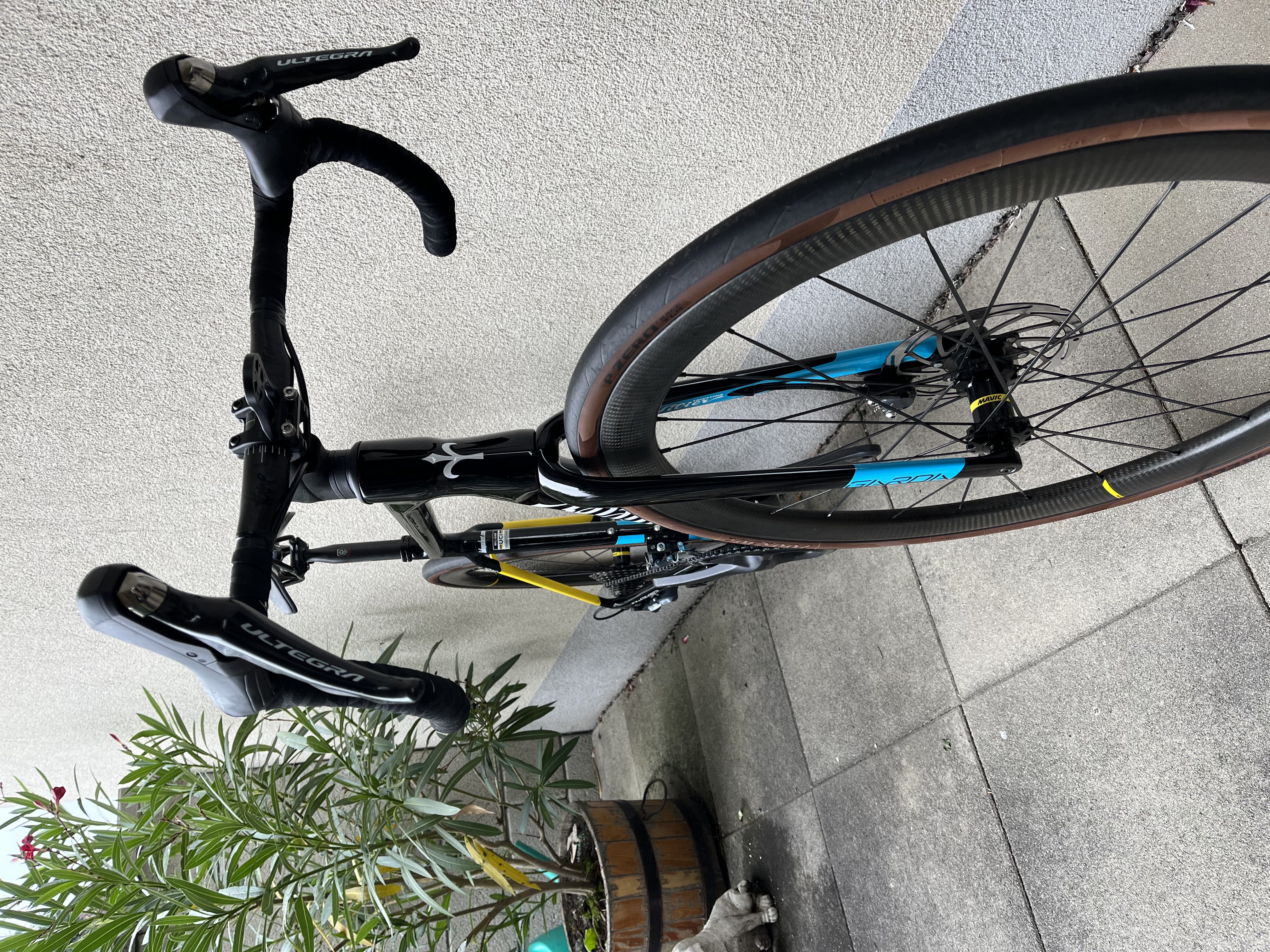 * Laufräder: Mavic Cosmic SL 45 Carbon UST, Tubeless mit im Mai gekauften Pirelli (Gesamt-NP ca. 1200.-)