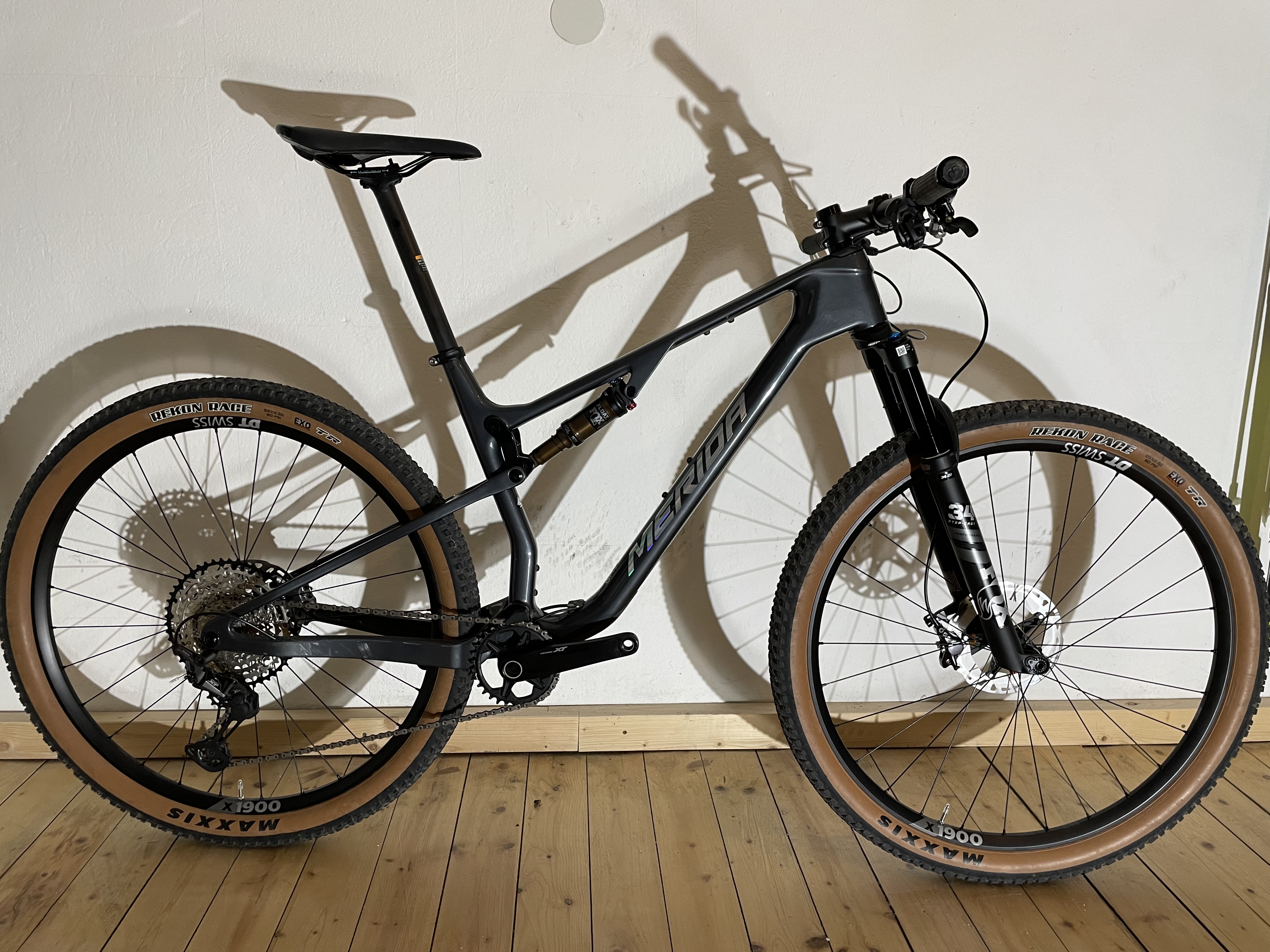 XCO - Spitzenmodell: Größe L (+/- 180cm). Nur der Rahmen ist gebraucht, aber im Topzustand. Alle Teile (XT) auch Lager sind nagelneu und vom Shimano - Fachhändler montiert. Gelegenheit: wegen Sponsorwechsel abzugeben, Trainerrad - kein Renneinsatz!