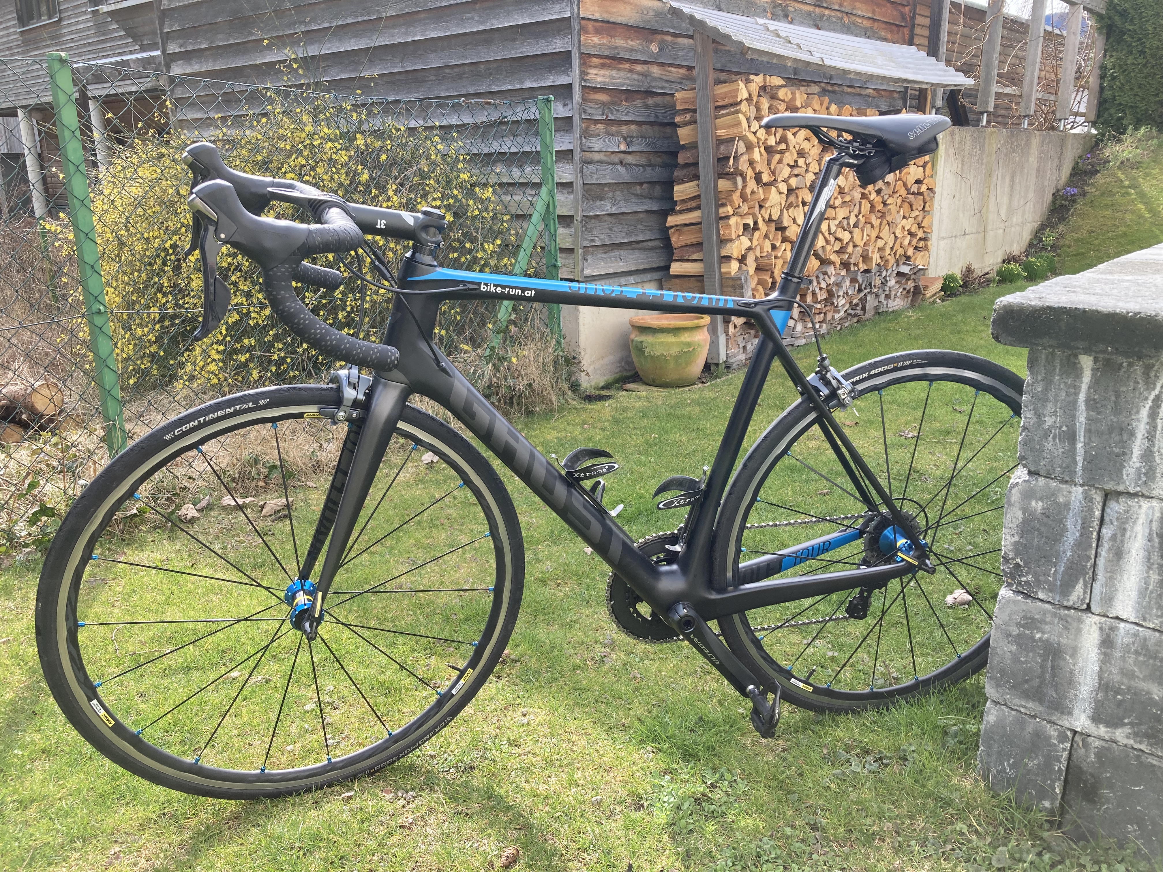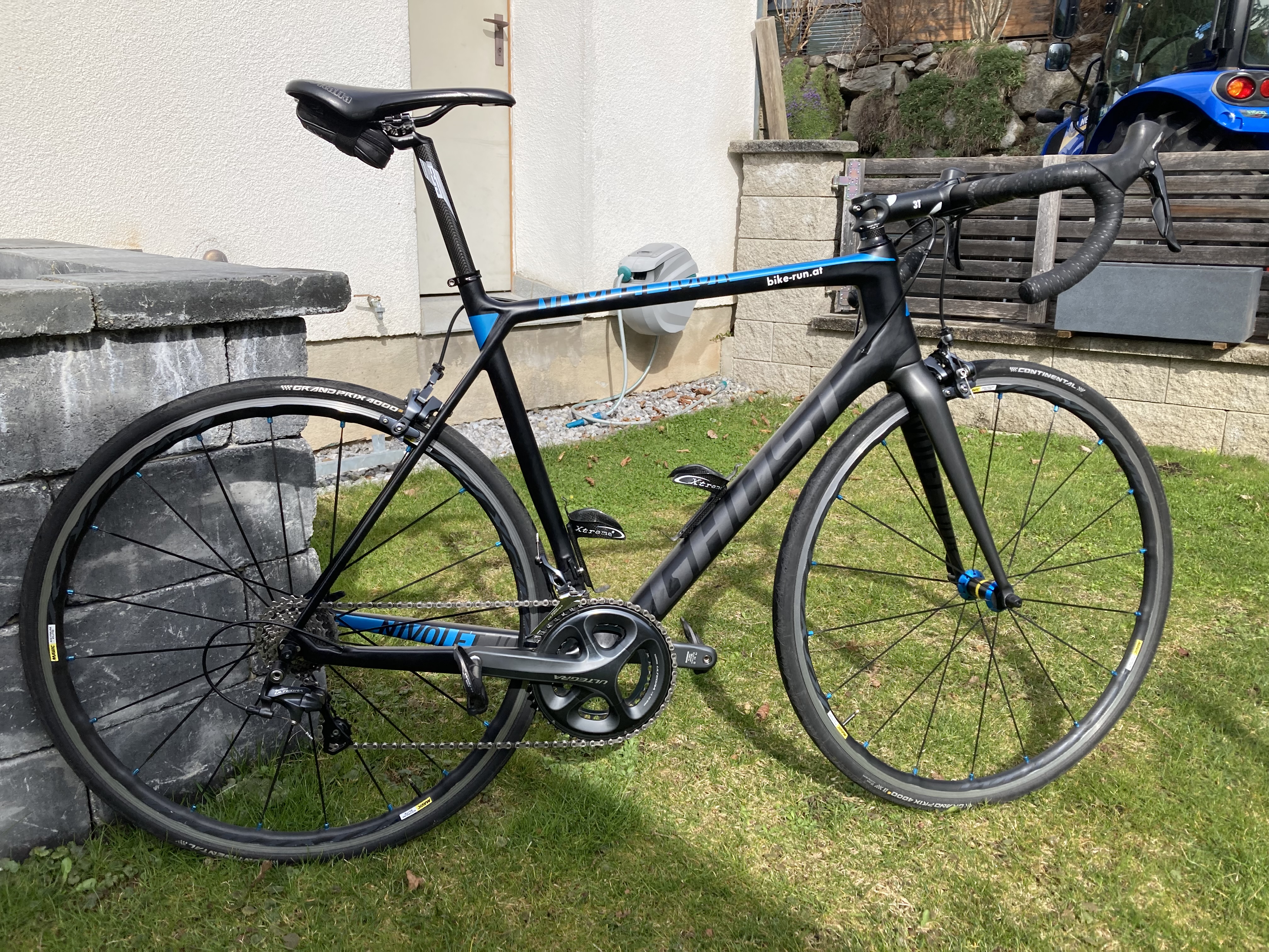 Sehr gepflegtes Rennrad Ghost Nivolet LC Tour 4 mit kompletter Shimano Ultegra (11-fach) Ausstattung und Carbon Rahmen Gr 56. Übersetzung 50/34 und 11/28. Mavic Ksyrium Elite Laufräder. Das Rad ist sehr gepflegt, hat keinen Sturz und keine Kratzer am Rahmen. Derzeit ist ein 130 mm Vorbau montiert, diesen kann ich aber gegen einen kürzeren Vorbau tauschen. Der neue original Sattel und die Alusattelstütze ist auch noch vorhanden.