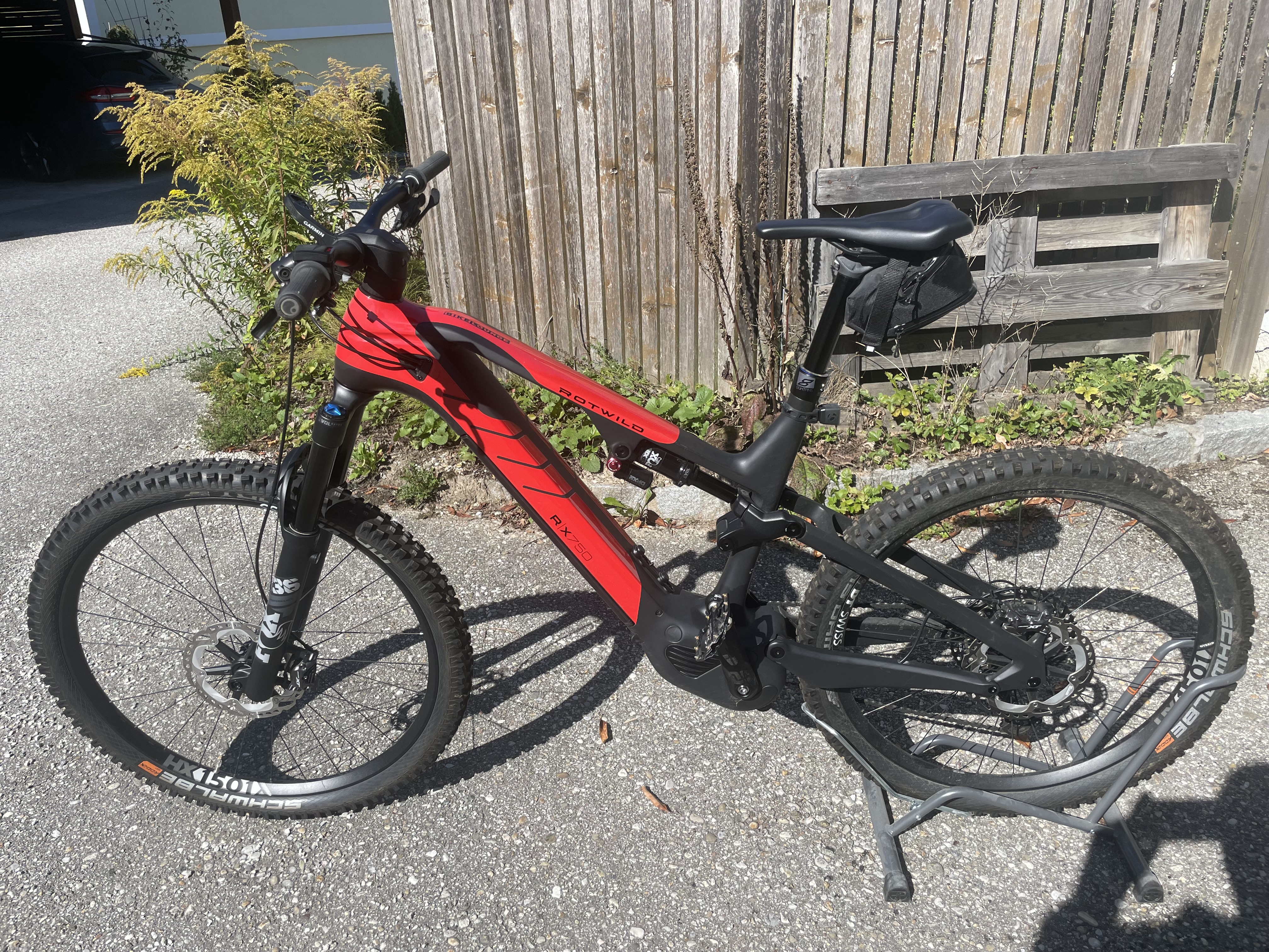 Telefon: +436764197147e-Bike Typ e-Mountainbike Modelljahr 2022 Motorunterstützung 25 Schaltung Hersteller Shimano Schaltungstyp Kettenschaltung Federung Fully Bremsentyp Hydraulische Scheibenbremse Farbe schwarz, anthrazit, rot Rahmengröße XL Reifengröße 29'', 27,5+'' Rahmenform MTB Fully Antriebseinheit Motor Brose Drive S Mag 36V 250W Akku 750 Wh Display Brose Display Allround Ladegerät 4,5A Charger Schaltung & Antrieb Schaltung Shimano XT 8100, 12-Gang Kettenschaltung Schalthebel Shimano XT I-SPEC EV Schaltwerk Shimano XT 8100 SGS Standard Plus, 12-Gang Kurbelsatz e*thirteen Plus, 160 mm (S)/165 mm (M, L)/170 mm (XL) Kassette Shimano CS 7100, 12-Gang, 10-51T Kette Shimano HG 7100 Rahmen & Gabel Rahmen Vollcarbon-Rahmen mit Carbon Linkage Gabel FOX 36 Float 150 FIT GRIP, 3-Position Micro Adjust, Performance E-BIKE+, 150 mm Federweg Steuersatz ACROS RW375 1.5 Steuersatz mit Lenkanschlag Dämpfer FOX Float X Performance, 3-Position, EVOL LV, 152 mm Federweg Bremse Bremsanlage Shimano XT 8120, hydraulische Scheibenbremse, 4-Kolben, 203 mm Laufräder Felgen DT SWISS HX1501 SPLINE1 Naben (V/H) DT SWISS HX1501 SPLINE1 / DT SWISS HX1501 SPLINE1 Speichen DT SWISS HX1501 SPLINE1 Reifen v: Schwalbe Magic Mary, 29 x 2,4''/h: Schwalbe Hans Dampf Evo, 27,5 x 2,6'' Cockpit Lenker ROTWILD B220, Carbon, Breite: 780 mm, Rise: 15 mm Vorbau ROTWILD S140, 7075 Aluminium, MonkeyLink Interface Lenkergriffe Ergon GD10 Slim Factory Frozen Sattelstütze 8PINS H01, bis 200 mm Verstellweg (XL) Sattel Ergon SM Comp Sonstiges Zulässiges Gesamtgewicht 130 kg