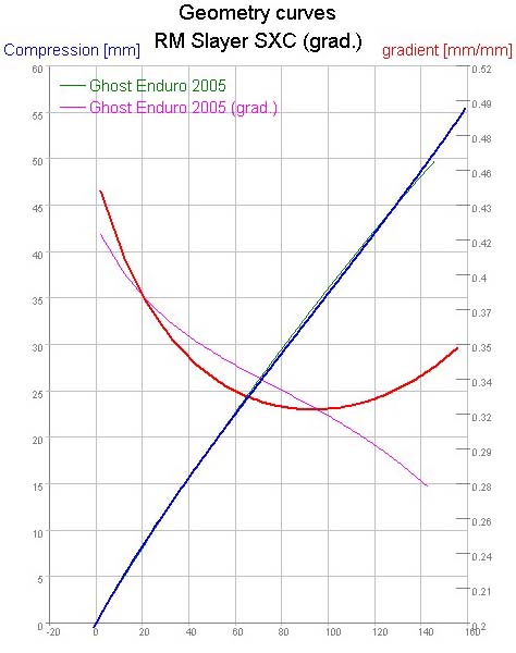 EDIT: o.k. jetzt funktioniert meine Birne wieder - kann ja gar nicht inkludiert werden, weil hier ja nur der Weg am Dämpfer zum Weg am Rad verglichen wird - und keine Kräfte. Somit geht der Einfluß ob Stahl- oder Luftdämpfer auf jeden Fall unter in so einem Diagramm.