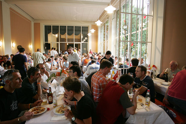 Große Anstrengung bedarf besonderer Ernährung. Auf der langen Strecke gab es sechs, auf der kurzen drei Verpflegungsstationen. Die sogenannten "Laben" wurden von engagierten heimischen Vereinen betreut. Insgesamt konnten dort 600 Kilo Bananen, 9.000 Müsliriegel, 300 Kilo Wurst, 500 Kilo Käse und 15.000 Liter Getränke zur Stärkung verteilt werden. Doch auch bei der "Nudel-Party" am Vorabend konnten die Radler und Radlerinnen zu Klängen der Reichenhaller Philharmonie in der Wandelhalle ausreichend Kohlehydrate tanken. Um die 2.000 Teller Nudeln wurden durch das Steigenberger Hotel Axelmannstein zubereitet und verteilt.