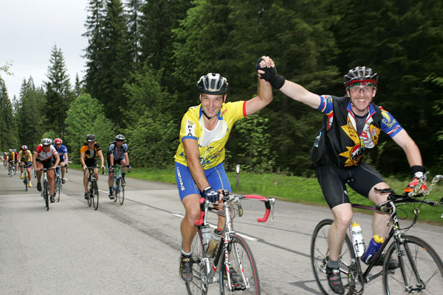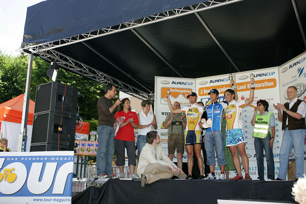 Rang Zwei in 5:43,10 Stunden teilten sich Stefan Kogler aus St. Gilgen im Salzburger Land und Thomas Brengartner aus Bad Reichenhall. Die beiden Sportler waren Hand in Hand über die Ziellinie geradelt. Der 41-Jährige Lokalmatador Brengartner war auch bei der Marathon-Erstauflage im Juni 2005 auf dem Vize-Platz gelandet und ein bisschen enttäuscht: "Jetzt bin ich zum zweiten Mal Zweiter, schade ist es natürlich schon, dass es nicht mit einem Sieg geklappt hat, doch ich freue mich für den Andi. Wir sind aus dem selben Team und die ganze Zeit zusammen gefahren." Sein Kollege auf dem Silberrang, der 35-jährige Österreicher, Stefan Kogler lobte die Organisation des Radmarathons in Bad Reichenhall und freute sich über sein Abschneiden: "Ich kannte die Strecke nicht und habe nicht gewusst, dass zum Schluss noch mal ein Berg kommt. Dort habe ich mich fast umgebracht. Thomas und ich sind gemeinsam durch das Ziel gefahren, das ist schön. Wir haben gemeinsam gekämpft und sind zusammen Zweiter geworden. Jetzt ein kühles Bier, darauf freue ich mich."