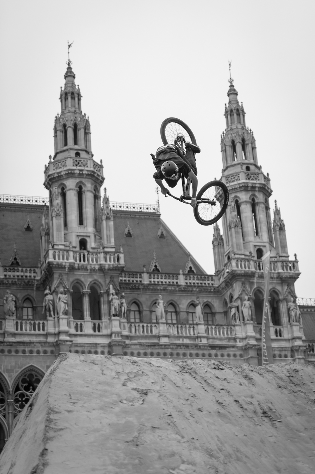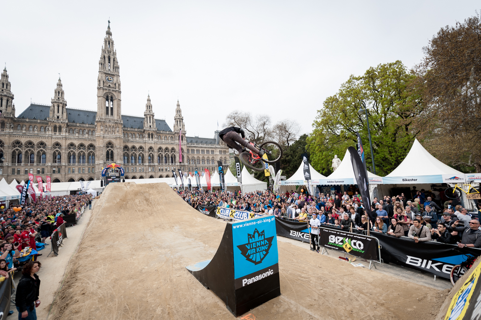 Das Wetter machte den Dirt Contest 2014 zu einer noch spannenderen Angelegenheit als er aus sportlicher Sicht ohnehin schon war. Sprichwörtlich auf die Minute genau konnten die 15 Finalisten den FMB World Tour Silver Event beenden, als ein heftiger Regenschauer für viel Bewegung unter den Zuschauermassen auf dem Wiener Rathausplatz sorgte. Den Fahrern war es wohl letztlich egal, denn sie konnten die 10.000 Euro Preisgeld ganz entspannt im Trockenen entgegennehmen.