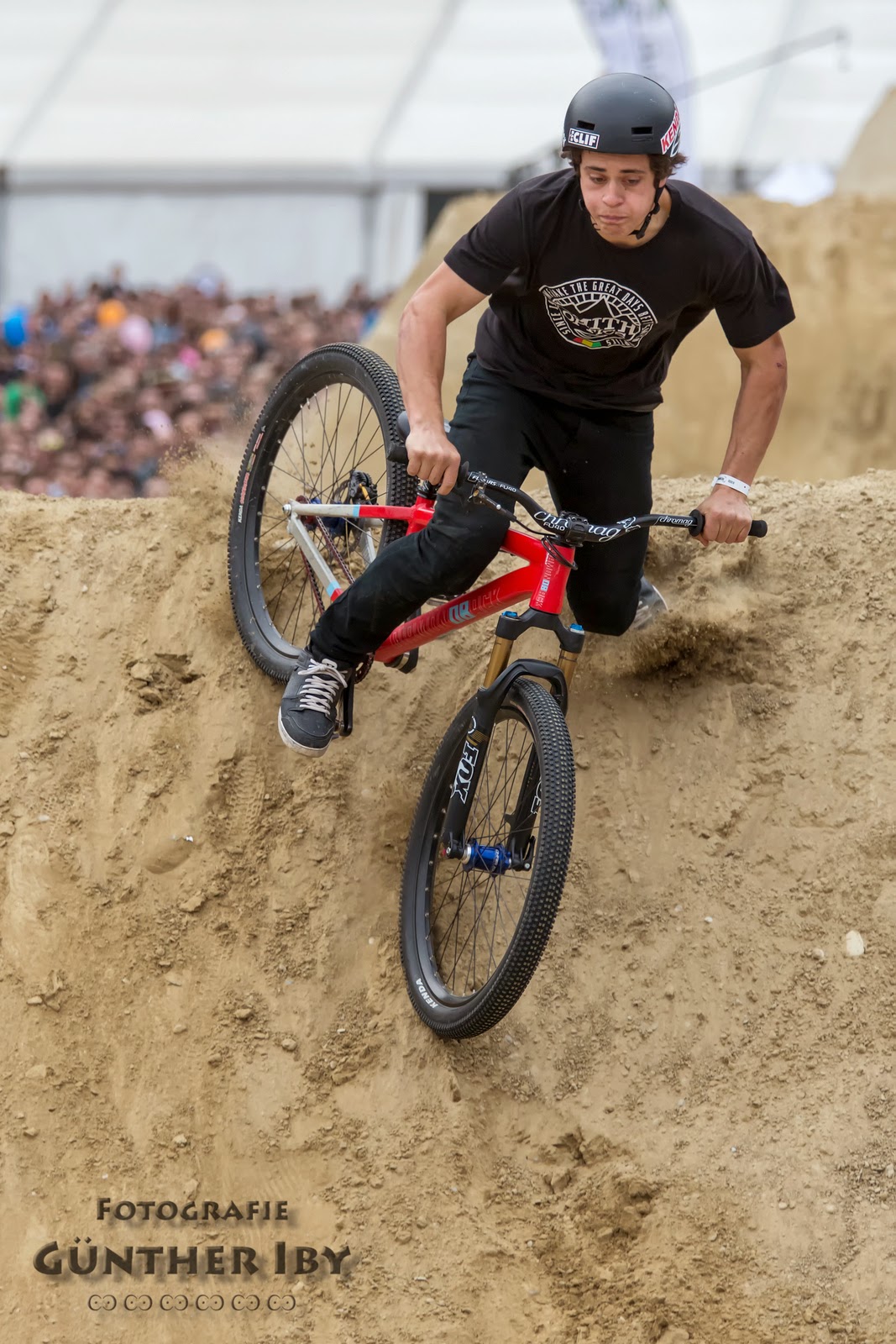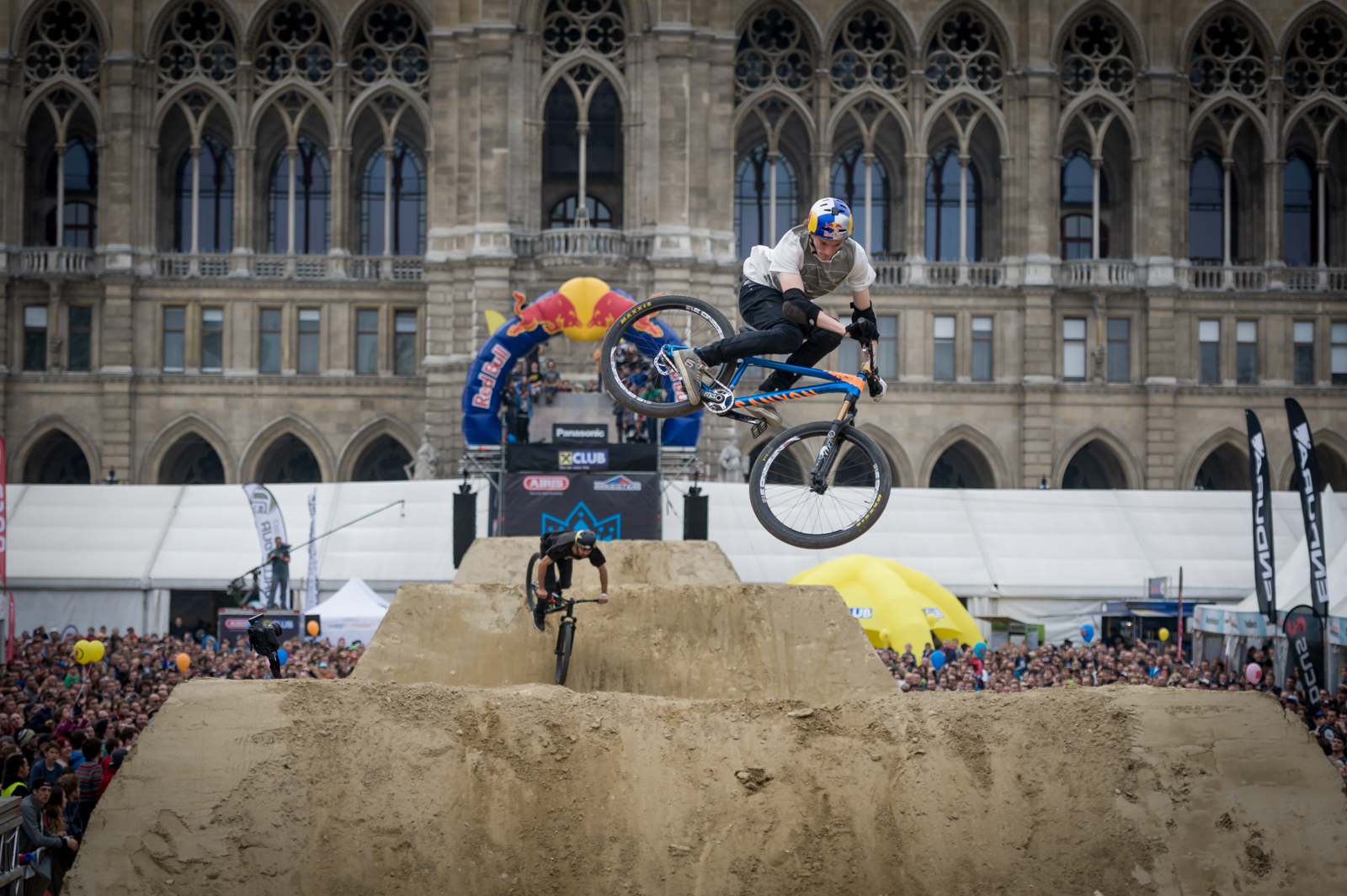 Sogar noch spektakulärer wurde es dann beim Panasonic Best Trick Contest. Die Teilnehmer hatten 45 Minuten Zeit, um alles aus ihren Rädern herauszuholen, was die Schwerkraft erlaubt. Szymon Godziek sicherte sich schließlich mit einem Backflip Cliffhanger die 1.000 Euro Extra-Preisgeld.