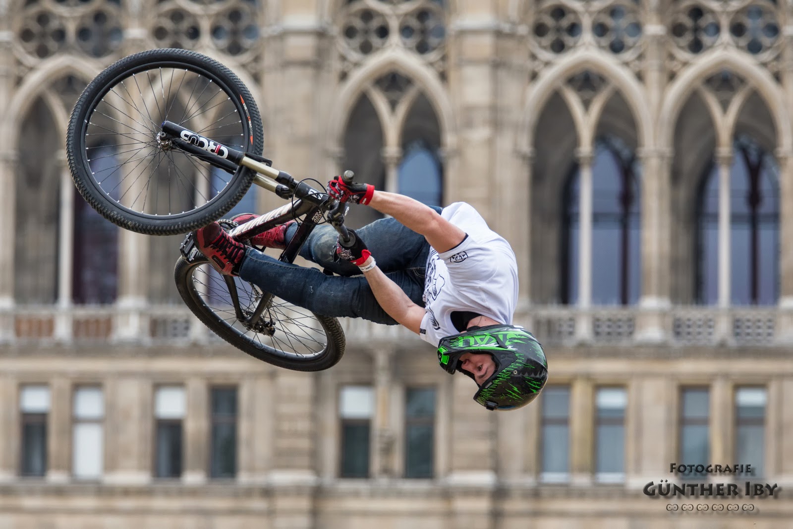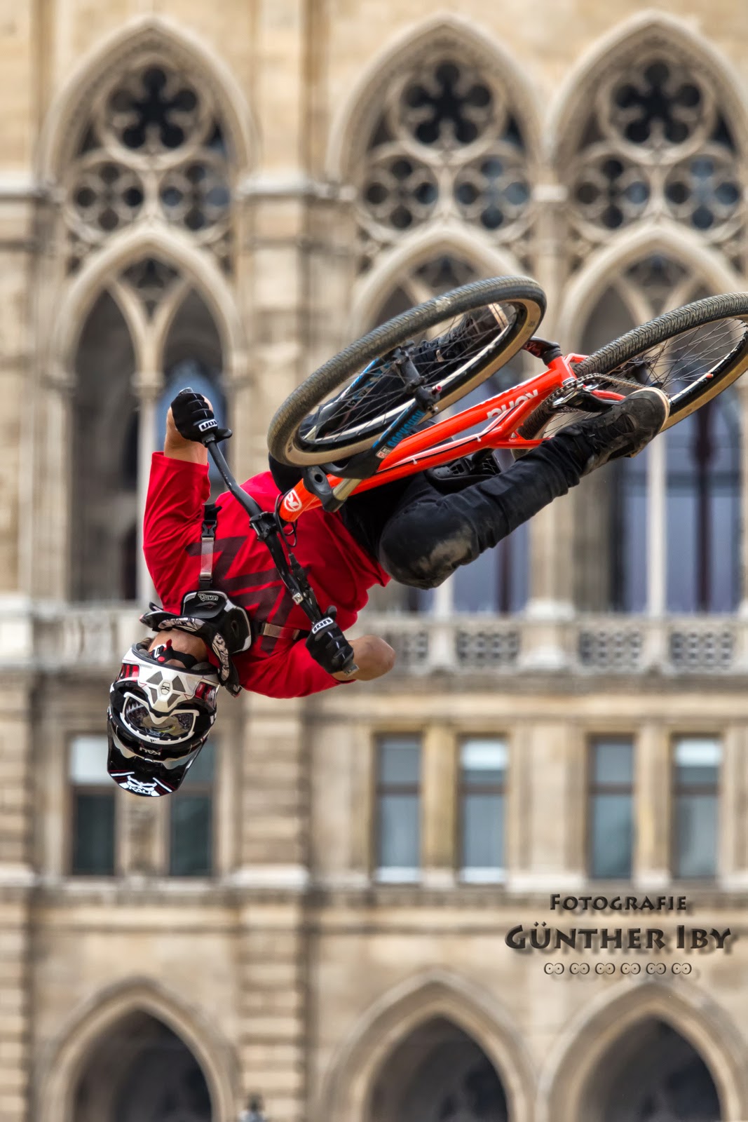 Das Finale vom Sonntag war allerdings nicht das einzige Highlight des Wochenendes. Bereits am Samstag bekamen die Besucher des Argu Bike Festival gediegene Bike-Action zu sehen: Das komplette Fahrerfeld inklusive den Pre-Qualifiern ließ sich zu einem Mega-Train über den Step-Down-Drop und die drei Jumps quer über den Rathausplatz hinreißen. Ein Anblick den man in diesen Ausmaßen eher selten zu sehen bekommt:
