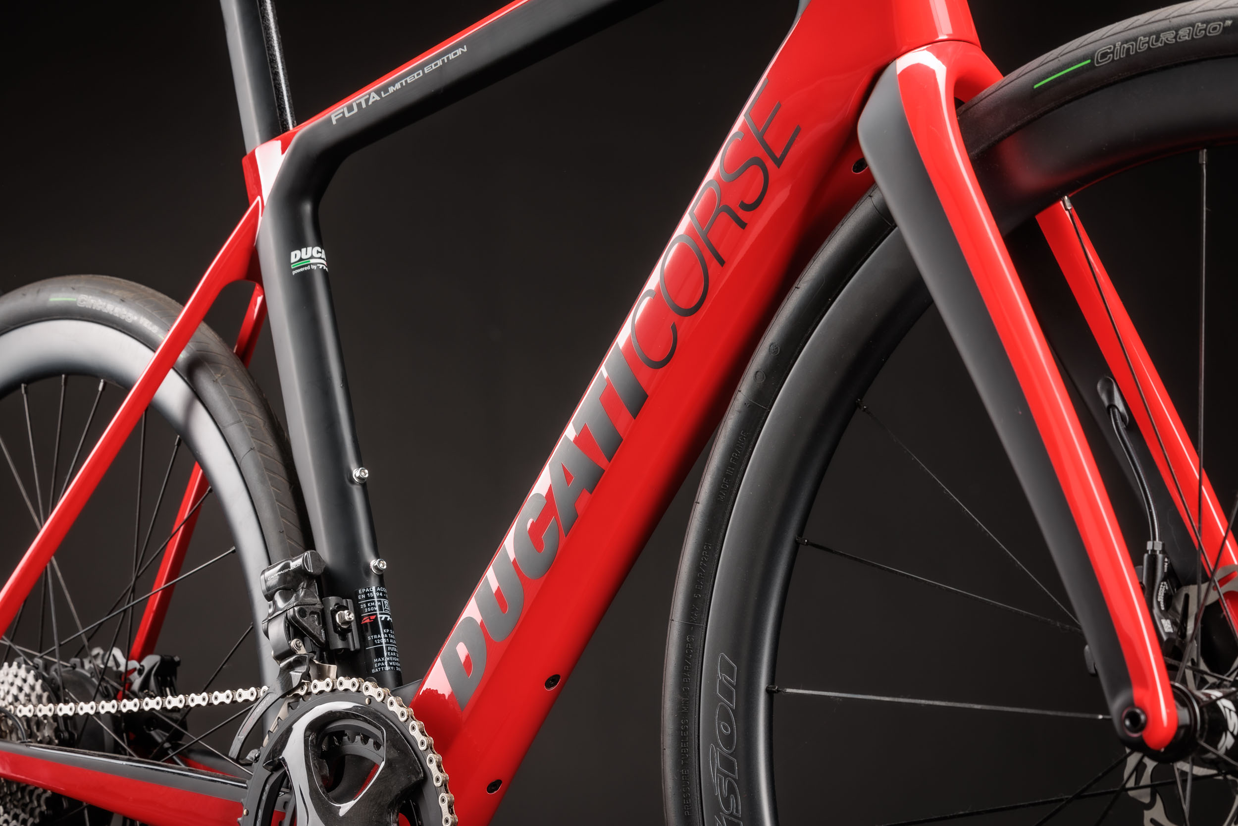 Im Jahr 2022 erweiterte Ducati sein Sortiment um ein E-Rennrad mit der Bezeichnung "Futa". Der Name leitet sich vom Futa Pass ab, einem Pass im Apenningebirge zwischen Bologna und Florenz. Der Futa E-Renner ist prinzipiell in zwei Modellen erhältlich, ausgestattet entweder mit einer FSA K-Force WE oder einer SRAM Rival eTap AXS Gruppe. Zusätzlich gab es eine auf 50 Stück limitierte Futa LTD Edition mit Ducati Corse-Lackierung, niedrigerem Gewicht und der exklusiven Campagnolo EPS Gruppe; diese gilt mittlerweile allerdings als ausverkauft.