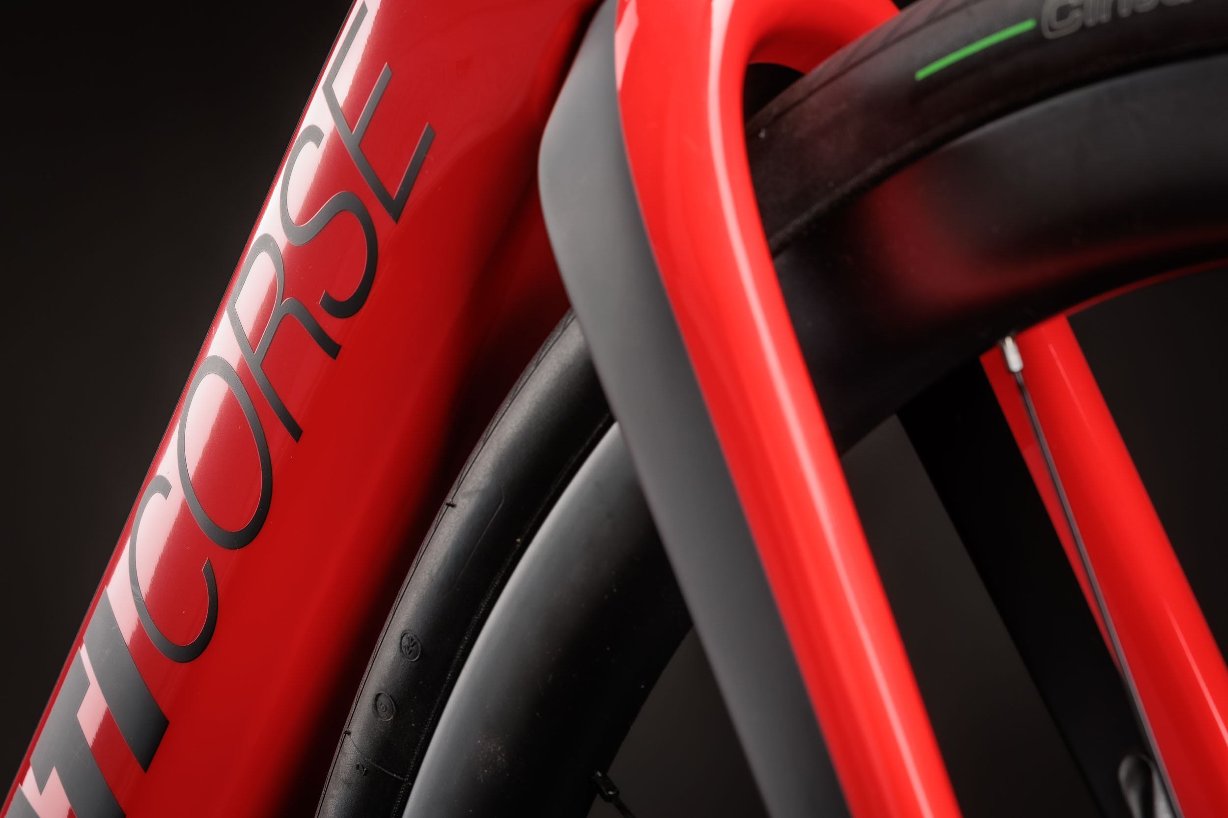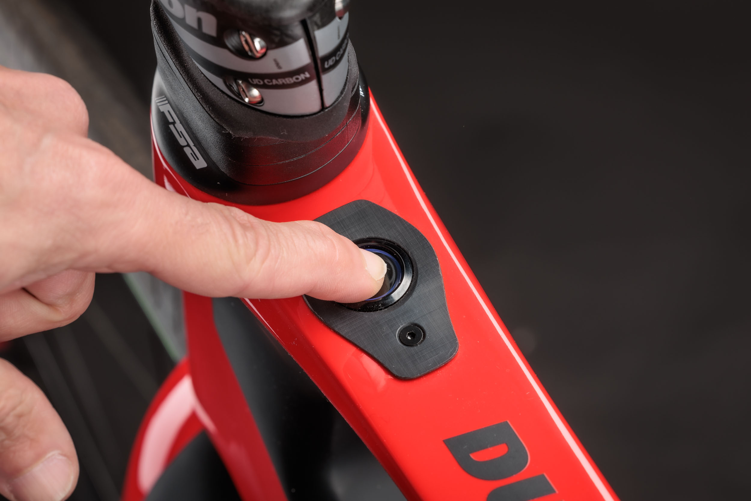Um eine saubere Ästhetik sowie aerodynamische Vorteile zu gewährleisten, wurden sämtliche Kabel und Leitungen intern verlegt. Das Futa macht bereits auf den ersten Blick einen hochwertigen Eindruck und überzeugt auch bei genauerer Betrachtung: Der Rahmen und seine Lackierung wirken sauber verarbeitet, die Kanten sind akkurat und glatt und es präsentiert sich beinahe wie ein herkömmliches Rennrad. Werkseitig wird das Futa LTD mit 35 mm breiten TLR-Reifen von Pirelli ausgeliefert, wobei Rahmen und Gabel optisch noch genügend Platz für deutlich breitere Reifen bieten.