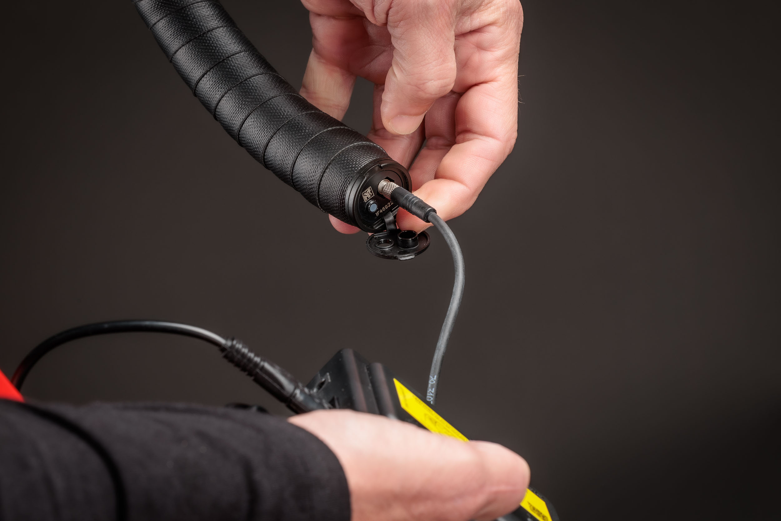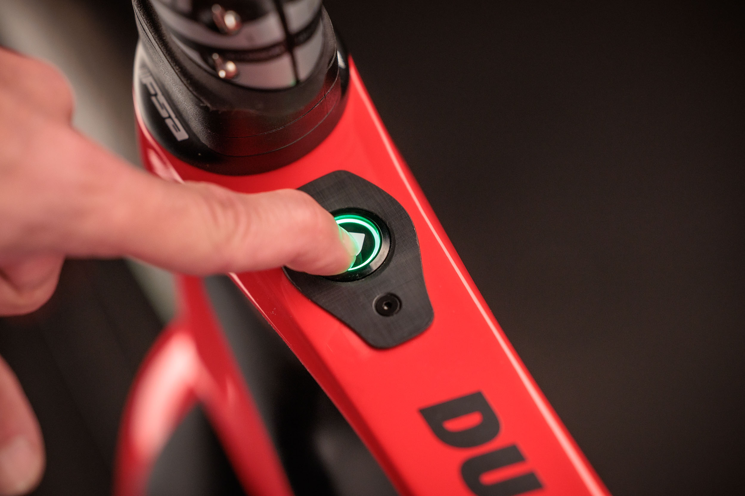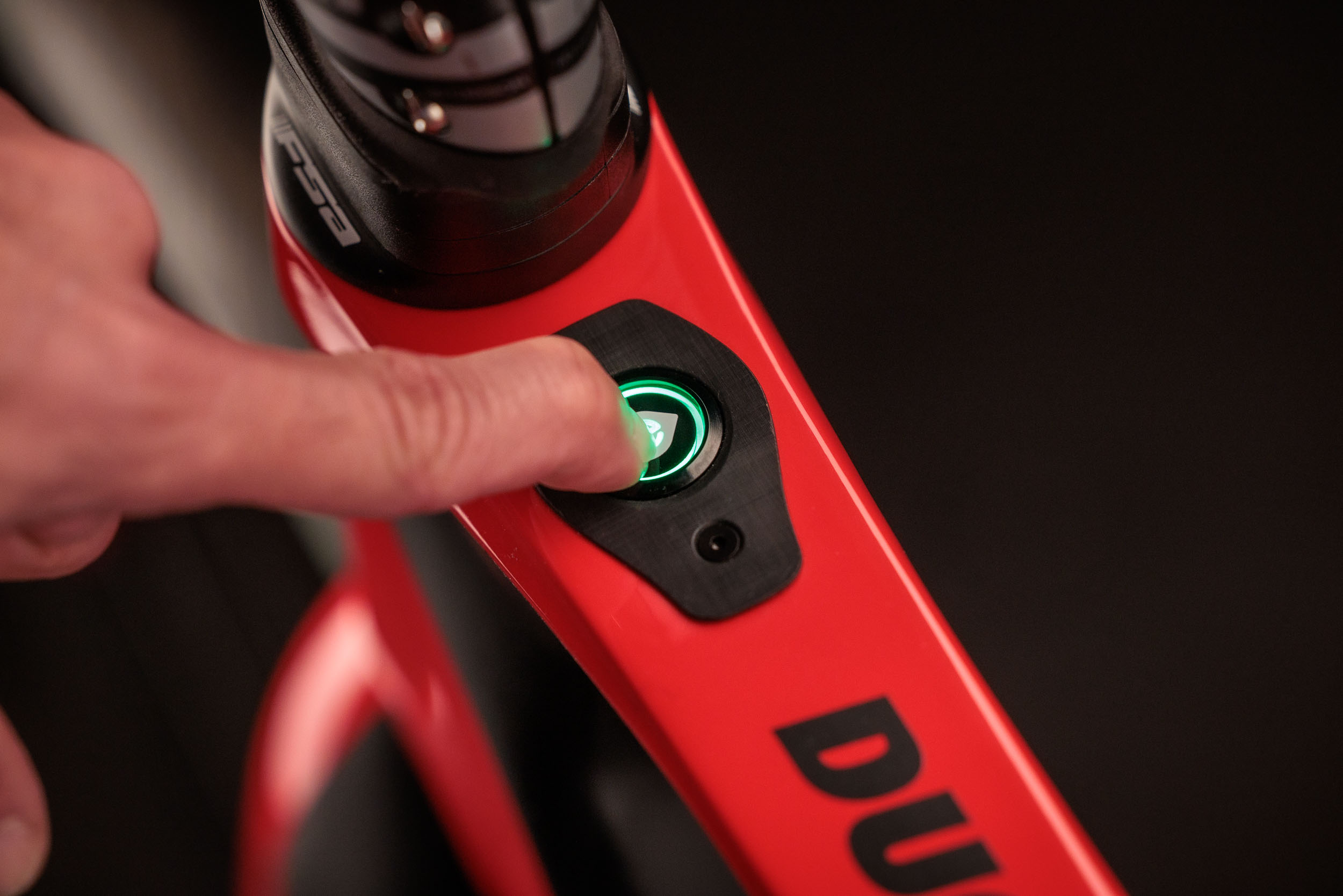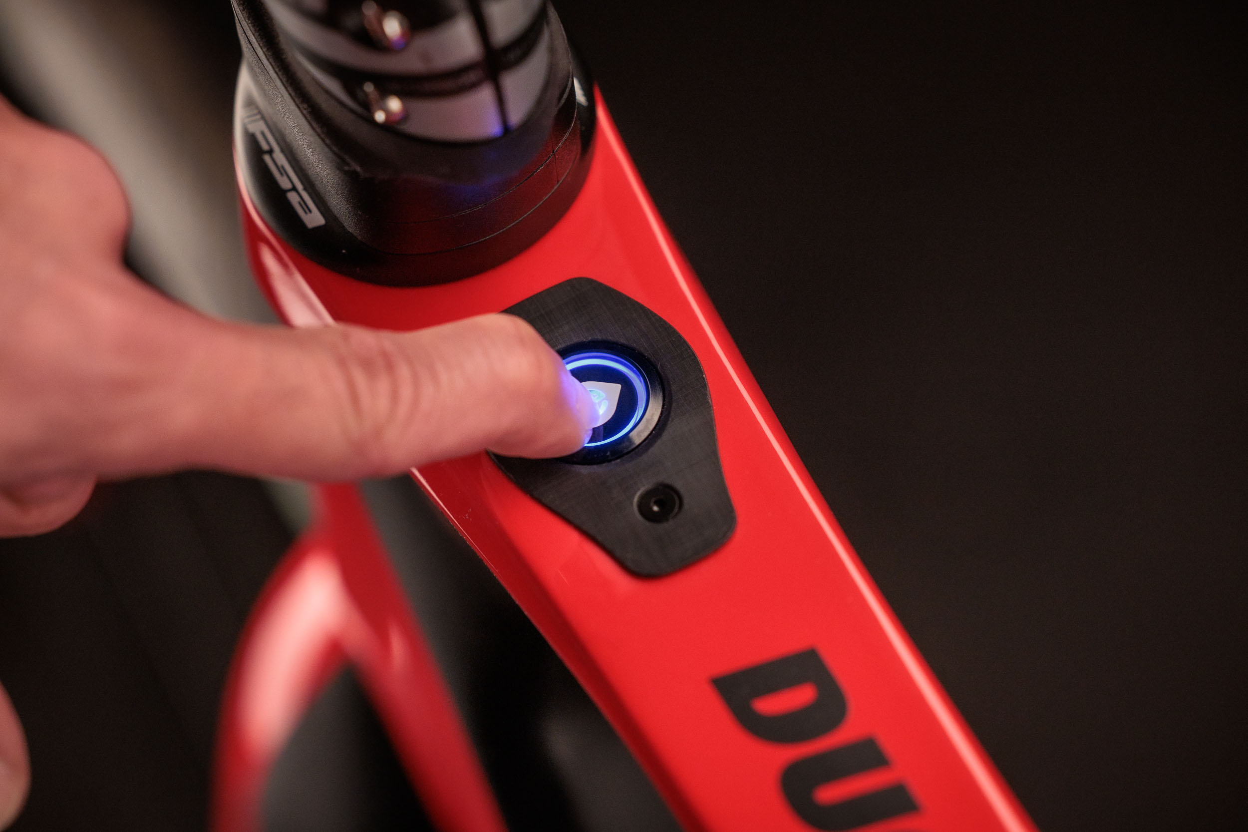 Die fünf Unterstützungsstufen können entweder über den Hauptschalter vorne am Oberrohr oder mittels der am linken Lenkerbogen vorinstallierten Garmin eBike-Fernbedienung gesteuert werden. Die runde Fernbedienung verfügt über 3 Tasten: Eine zum Erhöhen bzw. Verringern der aktuellen Motorunterstützung, eine zum Durchblättern der Datenseiten des Edge-Fahrradcomputers und eine zum Aktivieren einer benutzerdefinierten dritten Option. Die eBike-Fernbedienung ist jederzeit einsatzbereit, da sie mit einer austauschbaren CR2032-Batterie betrieben wird, die bis zu einem Jahr hält und über einen automatischen Ruhemodus verfügt.