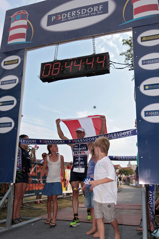 Der Klassiker über die Ironman-Distanz fand am Samstag bei tropischen Temperaturen und (nachmittags) heftigem Wind statt.Der Kampf um die österreichische Staatsmeisterschaftskrone verlief anfangs spannend wie schon lange nicht mehr. Nach dem Schwimmen lag das Elitefeld dicht beisammen und erstmals konnte auch der Titelverteidiger in der Gruppe der Favoriten dem Wasser entsteigen. Andreas Fuchs, Fünfter nach dem Schwimmen, fuhr bei brütender Hitze auf der Radstrecke einen Vorsprung auf seine schärfsten Verfolger heraus und legte so den Grundstein für seinen späteren Erfolg.Er siegte in der Zeit von 8:44:43 klar vor der Ironman Legende Alexander Frühwirth, welcher nach 8:55:42 das Ziel erreichte und überraschend noch den internationale Topathleten Petr Vabrousek aus Tschechien beim Marathon abfangen konnte.Die Mitfavoriten Max Renko und Robert Lang mussten dem hohen Anfangstempo Tribut zollen und aufgeben. Marinko Barac wurde Dritter bei den österreichischen Staatsmeisterschaften."Unglaublich, es war so schwer heute. Meine Vorbereitung auf dieses Rennen ist heuer nicht optimal verlaufen. Ich habe das im Vorfeld etwas heruntergespielt, aber meine Beinhautentzündung im Frühsommer und einige andere Faktoren haben mich etwas in der Vorbereitung behindert. Aber ich wusste, dass ich im Schwimmen und Radfahren und vor allem mental sehr stark bin. Das war heute ein Sieg des Kopfes", so Sieger Fuchs.Beim Damenrennen feierte Monika Stadlmann einen überlegenen Sieg. Sie entschied das Rennen in 10:27:42 für sich und holte sich somit den begehrten Staatsmeistertitel. Zweite wurde Doris Di-Giorgio in 11:10:11. Den dritten Platz am Stockerl sicherte sich die nach dem Schwimmen in Führung liegende Schweizerin Anita Lenti in einer Zeit von 11:23:36. Den dritten Platz in der Staatsmeisterschaft belegte Barbara Germershausen.