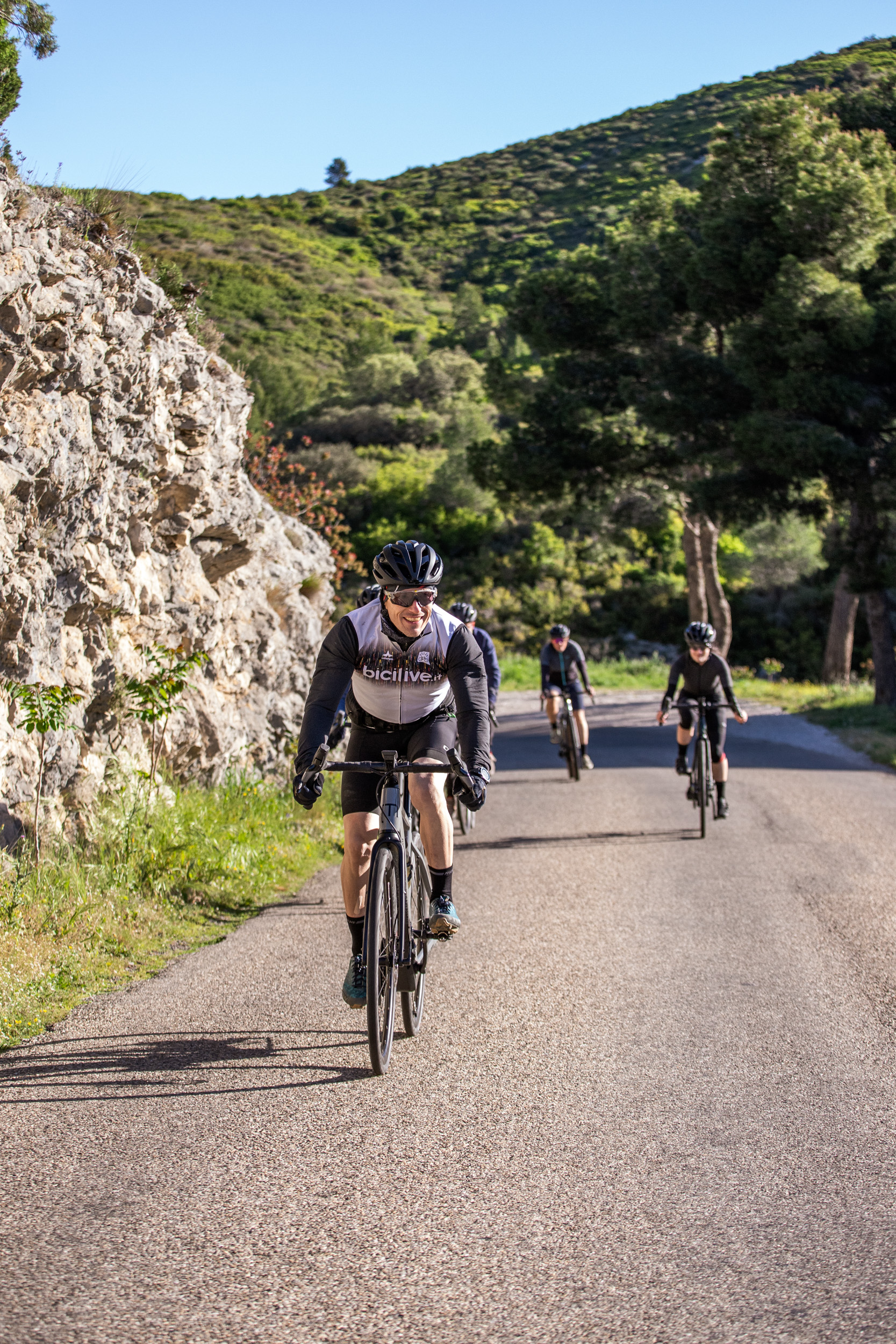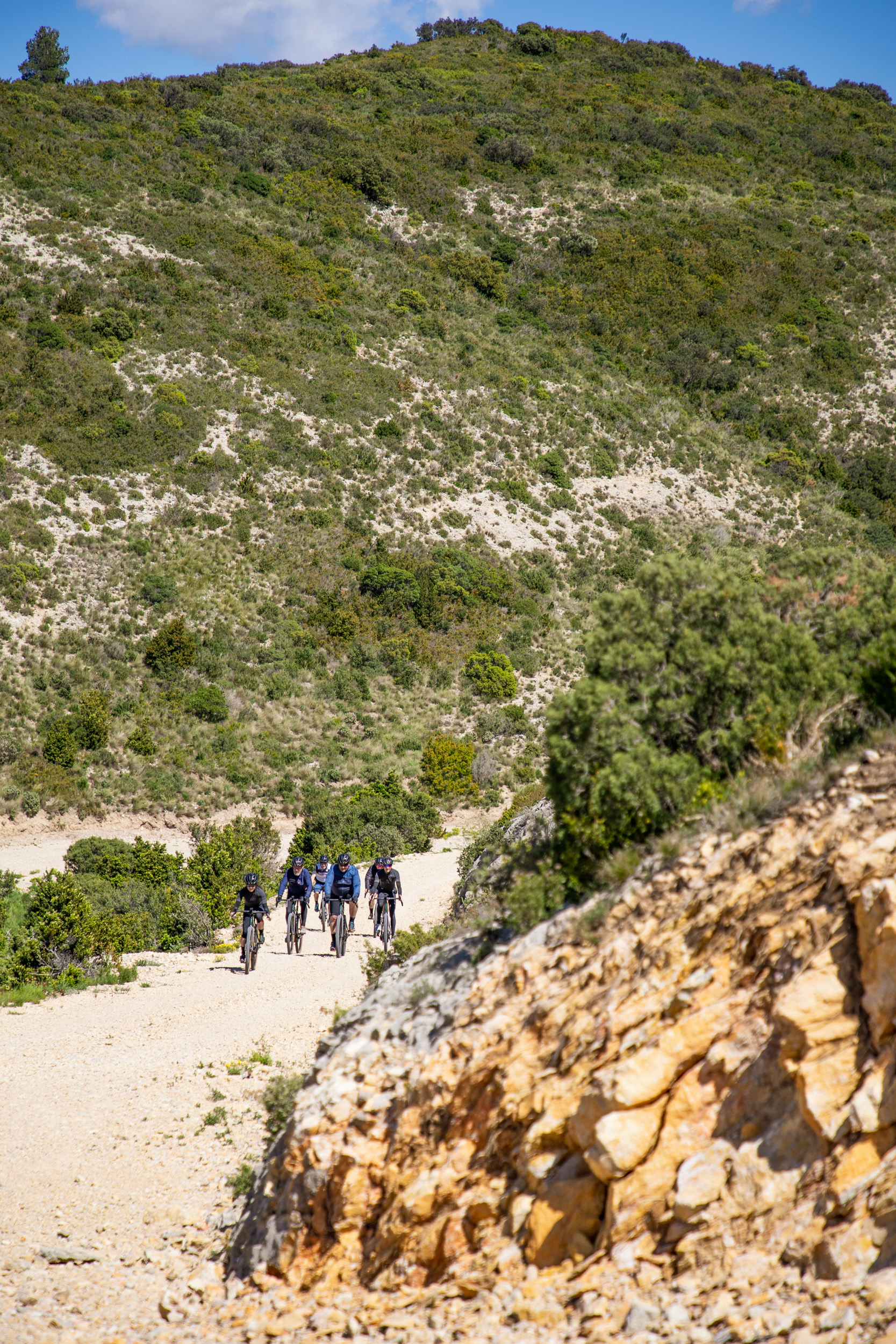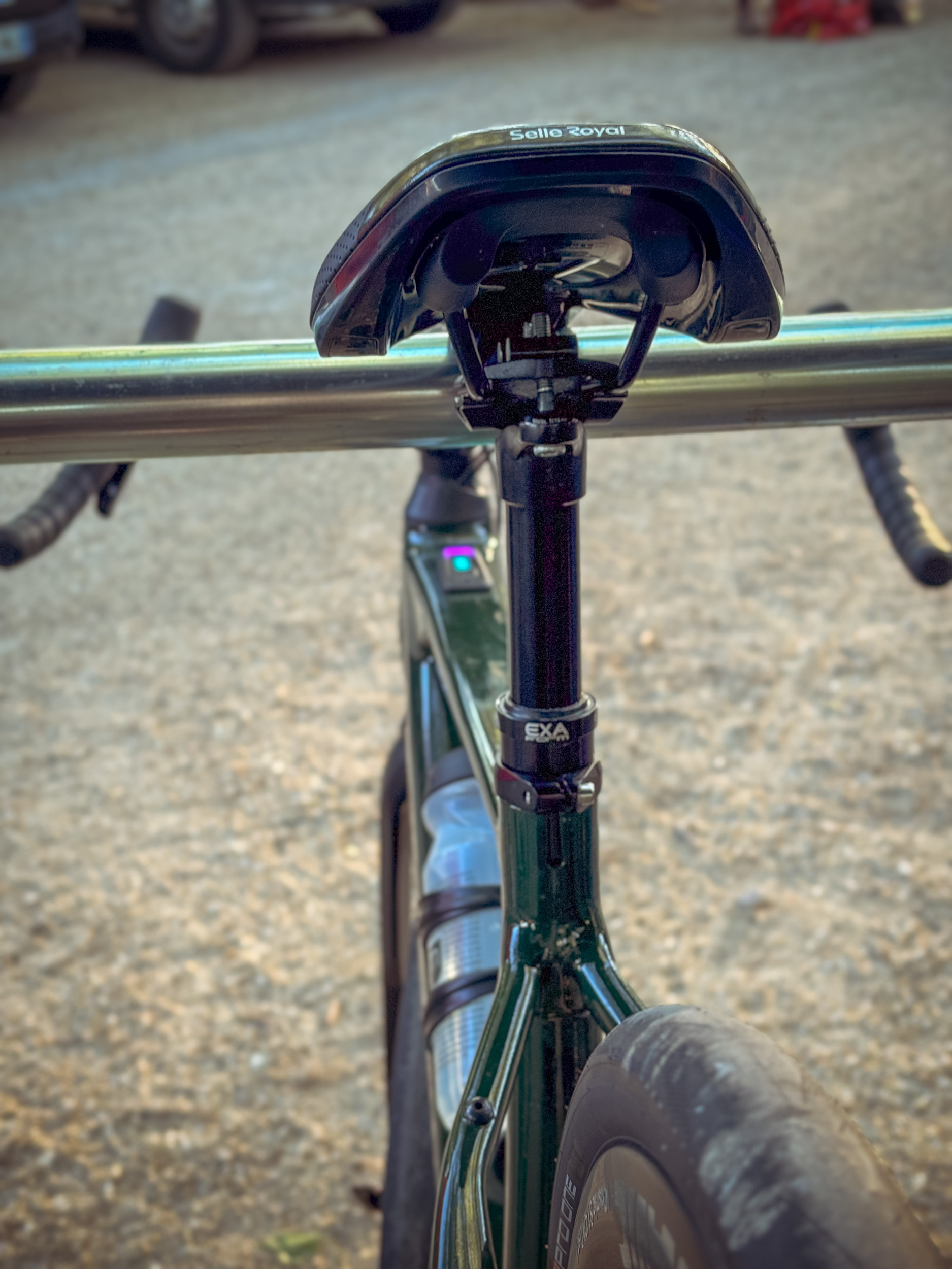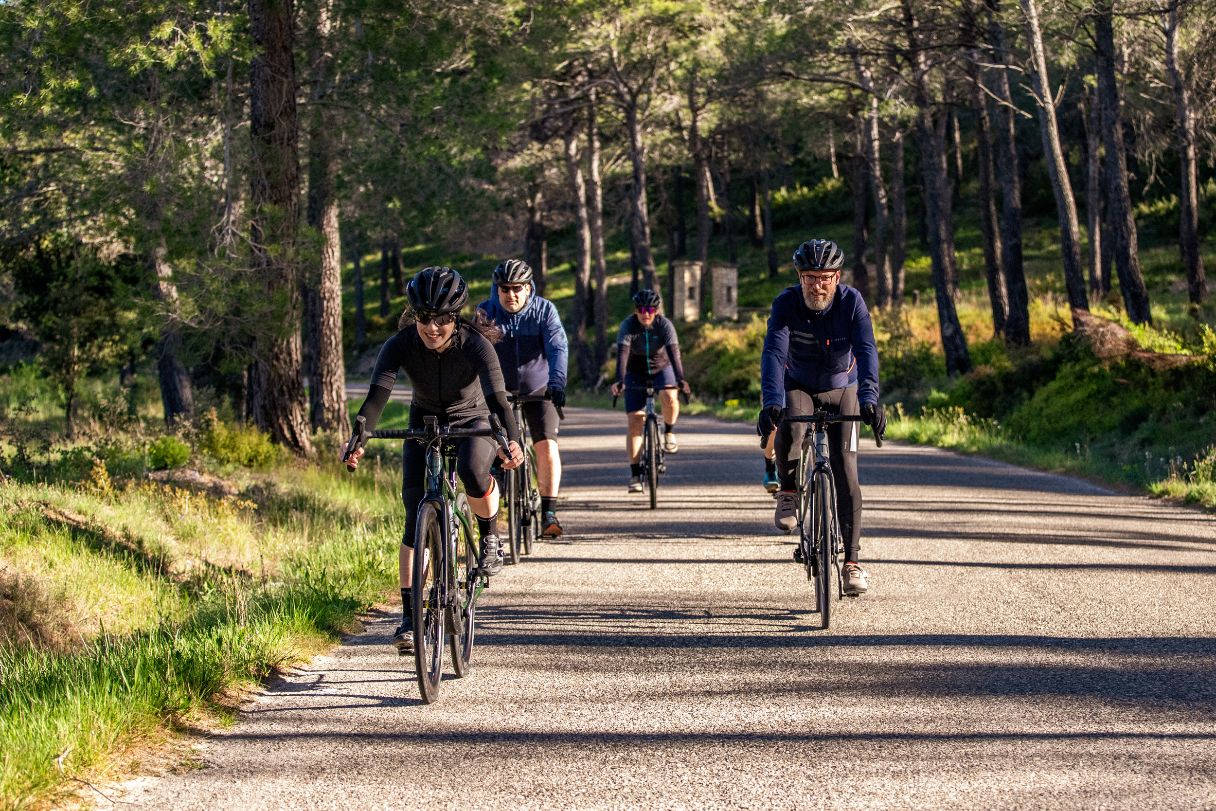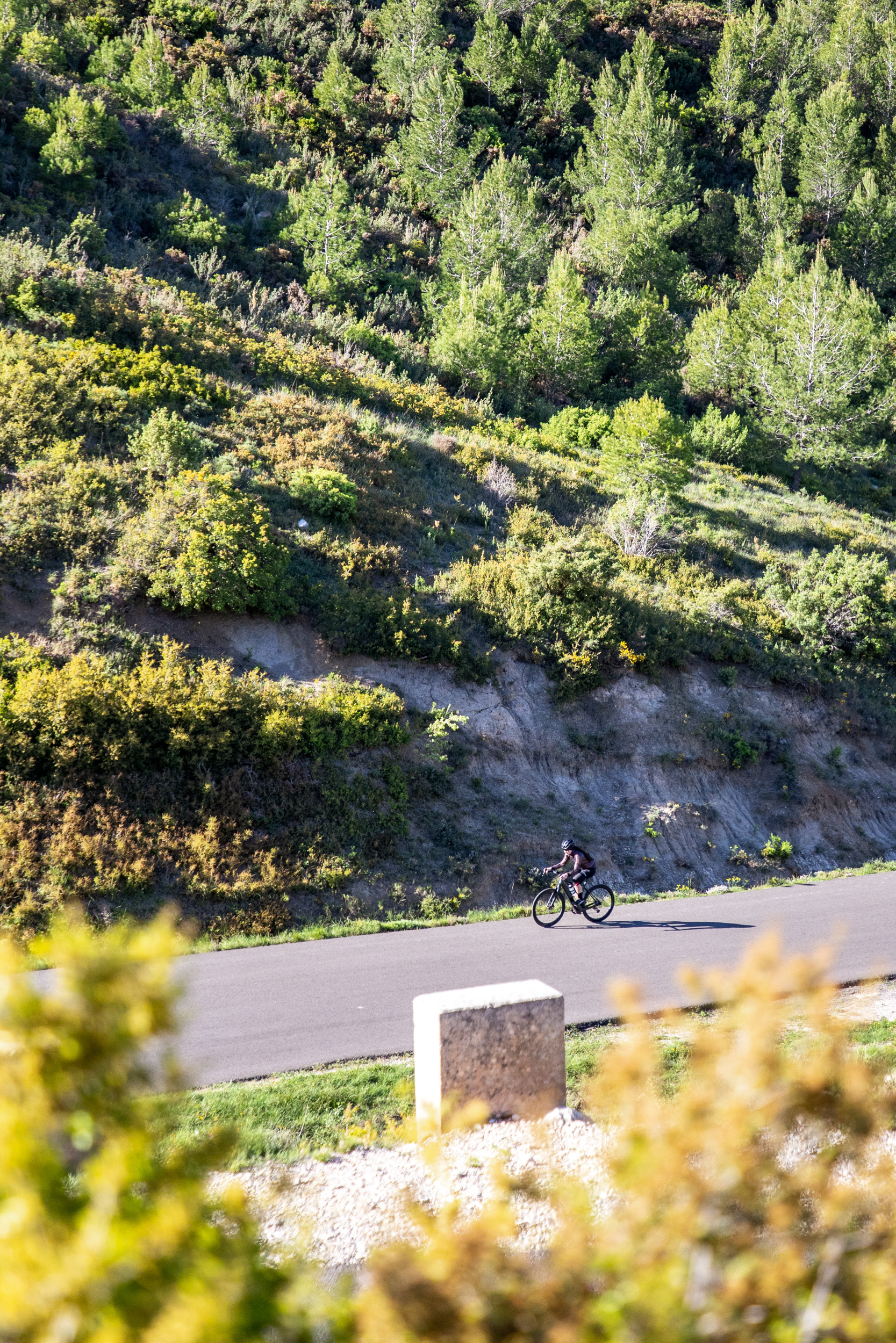 Die Geometrie der Dimanche-Modelle ist sportiv (als aggressiv würde ich sie allerdings nicht bezeichnen) und bietet sowohl Einsteigern als auch erfahrenen Fahrern eine komfortable Sitzposition. Stack und Reach bewegen sich am unteren Ende der üblichen Skalen. Mein sehr weiter Lenker und die Laufruhe des Bikes haben mir in den kurvigen Abfahrten bei den berüchtigten Mistralwindböen Südfrankreichs die Sicherheit gegeben, nicht sofort davongeweht zu werden. Auf schmaleren Schotterstraßen achtete ich allerdings vermehrt auf die Gruppe um mich, da die Ausweichmanöver weniger direkt von der Hand gingen - was allerdings bestimmt auch daran lag, dass der Rahmen beinahe zu groß für mich war.