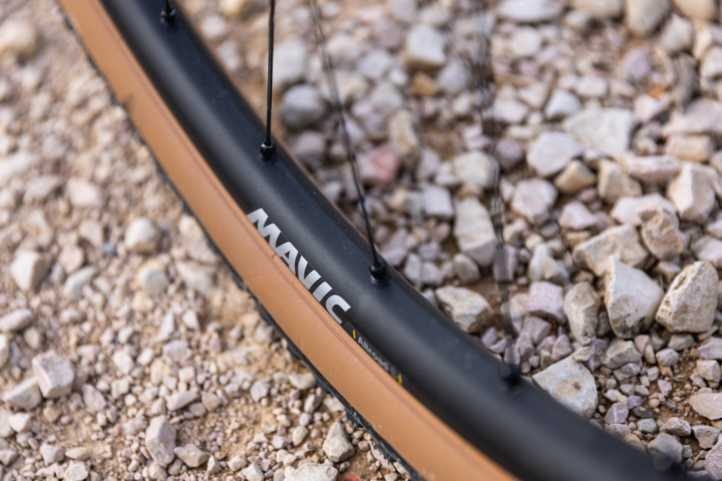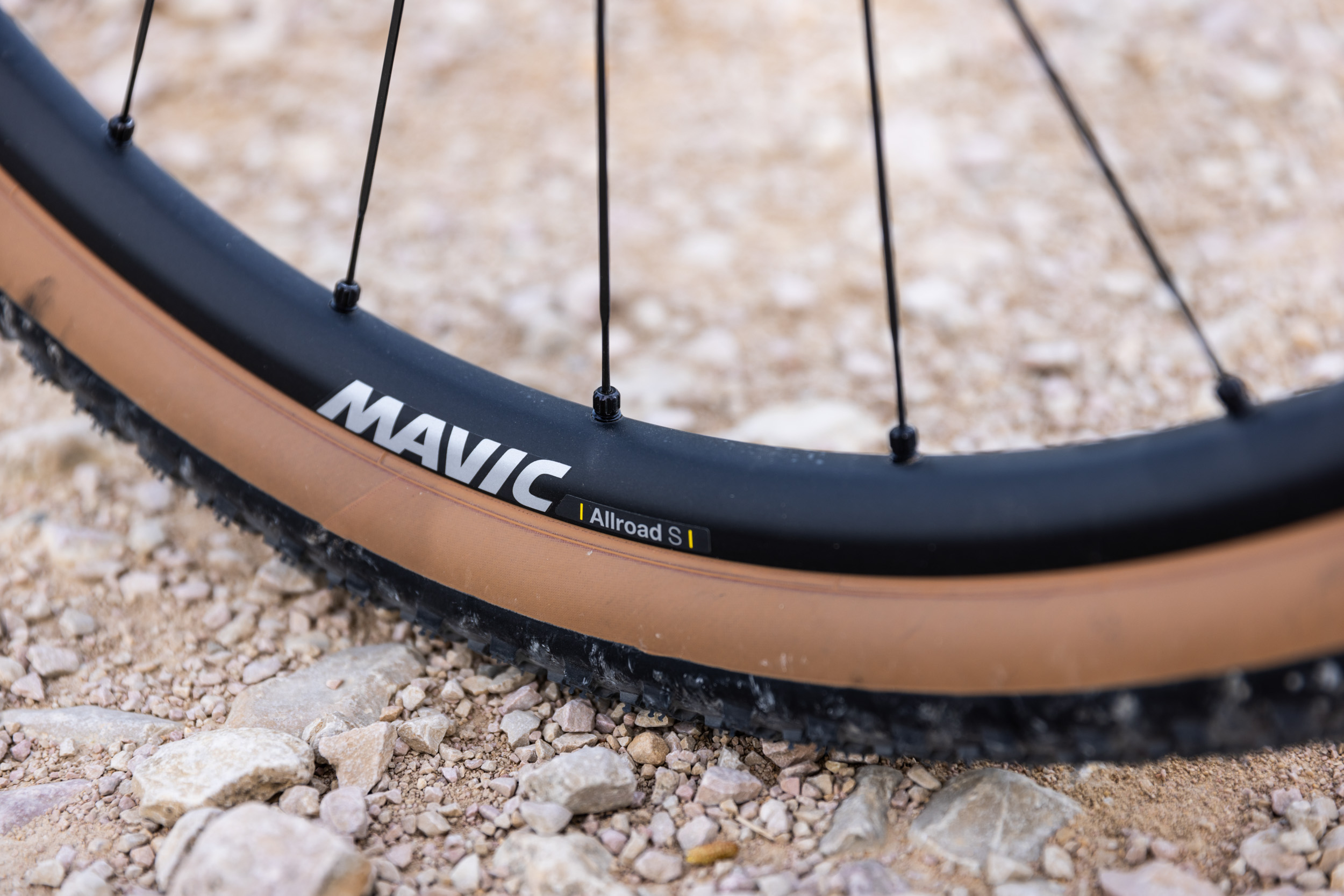 Laufradsatz Mavic, Allroad S, Aluminium, 24-Loch, 700c, 25 mm Breite, Tubeless kompatibel Reifen Maxxis, Rambler, 700x50C, Tanwall