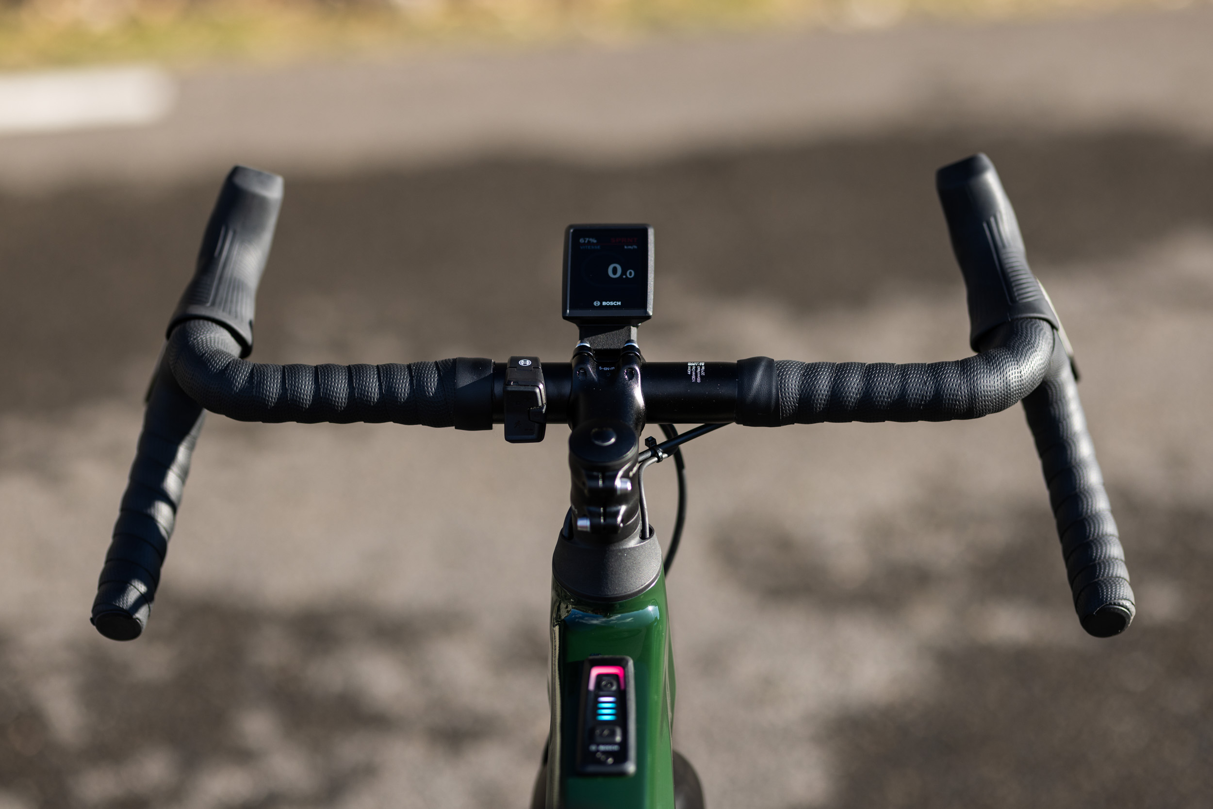 Die Steuerung der Modi als auch die Navigation erfolgen über den integrierten Computer Bosch Kiox300. Lediglich die preisgünstigste Version 2 des Dimanche 28 Road und des Dimanche 29 Gravel erscheinen mit einem Purion 200-Computer. Die Steuerung der Modi ist über den Taster am Oberrohr ebenso möglich, allerdings habe ich sie kaum genutzt.