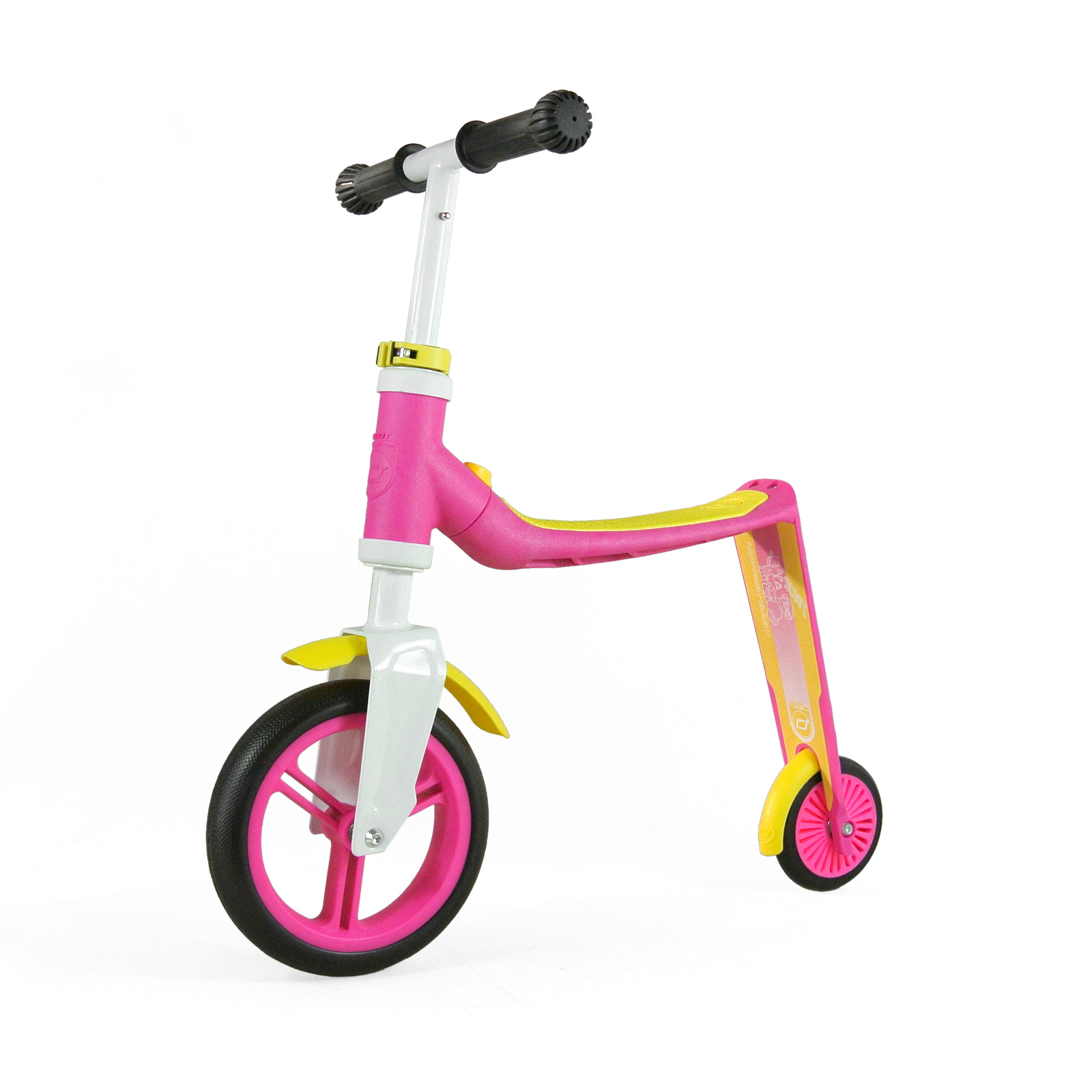 Alle Modelle sind mit laufruhigen Kunststoffrädern, Anti-Rutsch Oberflächen, rutschfesten Griffen, weichem Kunststoffsitz und Bremse am Hinterreifen ausgestattet. Die verschiedensten Farbkominationen und weitere Informationen gibt's unter www.scootandride.com