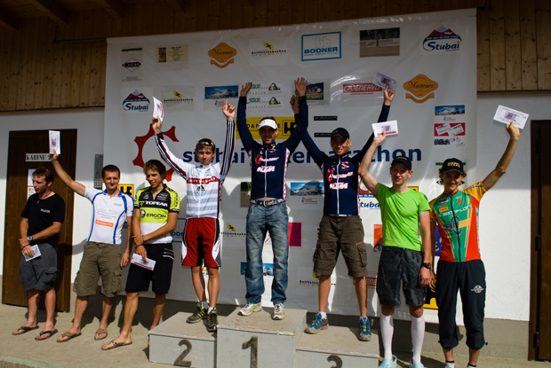 7,80 km und 870 Hm waren beim Auftaktrennen zum Stubaier Rennwochenende zu bewältigen. Die Favoriten für das Marathonrennen am Sonntag waren bereits beim Bergrennen von Mieders auf die Pfarrach Alm am Start, und sorgten vom Start an für ein hohes Tempo. Die zwei Tiroler Erich Schafferer und Alex Draxl konnten zu Beginn des Rennes noch mit der Spitze mithalten, doch als Heinz Verbnjak das Tempo nochmals erhöhte, fuhr er einen souveränen Start Ziel nach hause. In unglaublichen 35 Minuten bewältigte er die schwere Bergstrecke hinauf zur Pfarrach Alm, ihm folgten Silvio Wieltschnig und sein Transalp Partner Andi Strobel auf Platz 2 und 3. Die beiden Tiroler Erich Schafferer und Alex Draxl belegten die Ränge 4 und 5.